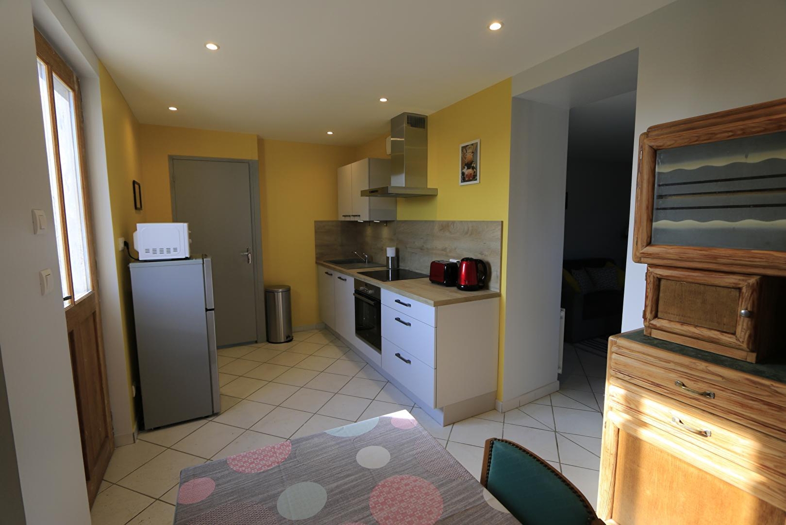 Composition : Maison comprenant 2 gîtes + logement des propriétaires (indépendances totales). Wifi (fibre). Chauffage électrique. Gîte de plain-pied en rdc : cuisine, séjour-salon (canapé convertible 2 p. 140x190cm en appoint), 1 chambre (lit 2 p. 160x200cm), salle d'eau (douche/Wc). Terrasse privative en gravier. Terrain clos commun (4000m²) + local vélos en commun. Parking privé. Commodités dont supermarché 5.5 km.