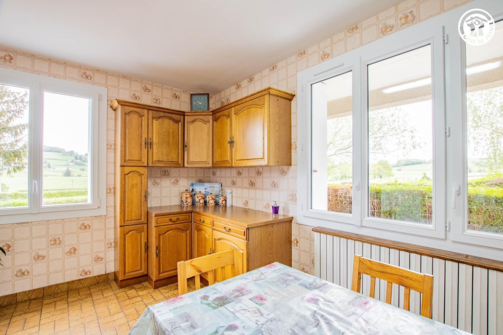 Confortable pavillon "eighties", rénové & "relooké", lové en "balcon" & "belvédère panoramique" à flanc de coteau exposé, sur une colline surplombant le bucolique étang du Bousson, site naturel de 42 ha protégé en ZNIEFF pour ses richesses faunistiques & floristiques. Calme & totale tranquillité au sein d'un hameau rural "dispersé", blotti au cœur du sublime bocage local, en lisière de pâtures avec comme proches voisines privilégiées les célèbres vaches charolaises paissant paisiblement. A deux pas du centre bourg du pittoresque petit village de Saint-Didier-sur-Arroux riche d'un patrimoine notable (ruine d'une villa gallo-romaine, divers châteaux des XVe au XIXe, vestiges d'anciens moulins…). Magnifique écrin préservé de nature & verdure, niché en pleine campagne morvandelle au creux d'un majestueux cirque vallonné de prairies cerclé de collines boisées, dominé par les douces montagnes du Couturier & de Dône offrant de superbes panoramas sur le Morvan & la verdoyante vallée de l'Arroux comme de nombreuses randonnées en pleine nature. Cadre enchanteur, véritable havre de paix & repos. Spacieux gîte de bon confort. Chaleureux cachet campagnard, un brin "vintage", mixant traditions & modernité dans une savoureuse ambiance "pop" colorée. Large terrasse en gravier côté cour, exposée & ombragée sous des arbres (selon), complétée par une petite terrasse abritée Agréable jardin engazonné & arboré. Splendide vue dégagée sur le plan d'eau, la campagne & les massifs environnants. Apaisants panorama & paysages.