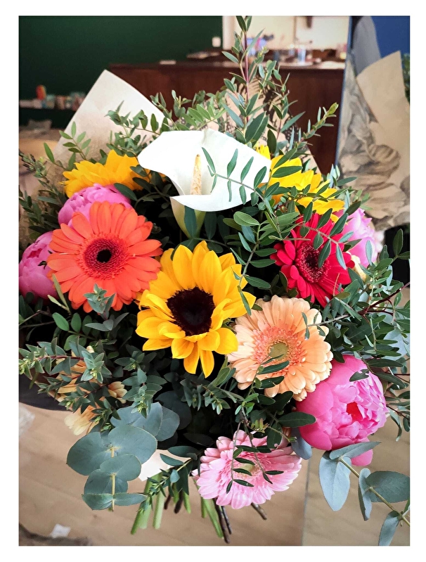 La goutte d'eau qui a fait déborder l'espresso, a été d'apprendre que le nombre d'horticulteurs.horticultrices a été divisé par 10 en 40 ans en France. J'ai pensé que l'on devait pouvoir proposer autre chose : des bouquets de saison, simples et joyeux, composés de fleurs et feuillages locaux.