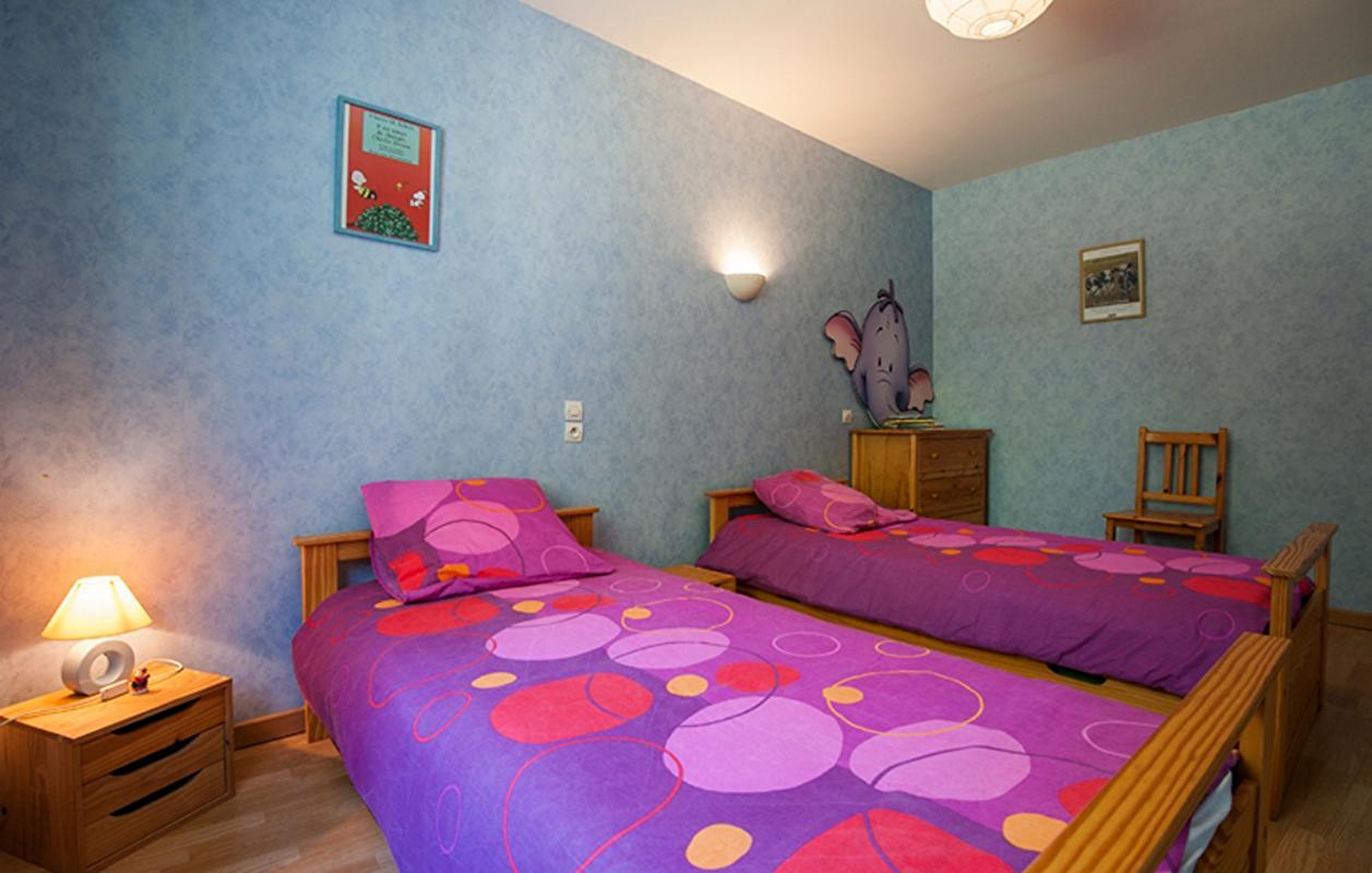 Composition : Gîte en rdc mitoyen à l’habitation des propriétaires (totale indépendance sans vis-à-vis). Chauffage électrique. Cuisine-séjour, salon TV, 2 chambres (lit 2 p. 140x190cm / 3 lits 1 p. 90x190cm dont 1 "gigogne-tiroir" en appoint), salle d’eau (douche), Wc indépendant. Jardin (600m²) + terrasse abritée + parking privatifs. Toutes commodités + Gare 3 km.