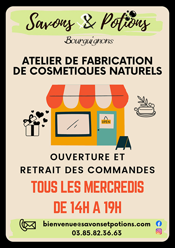 L'atelier de production est ouvert toute l'année les mercredis après-midi de 14h à 19h.