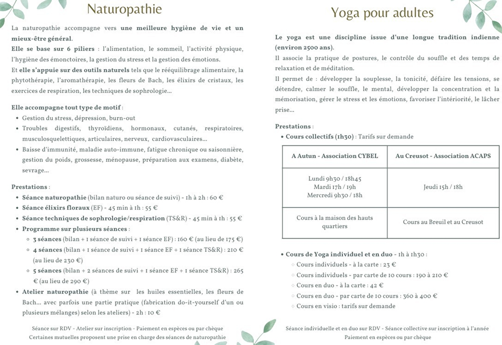Tarifs :- (Séance de naturopathie)