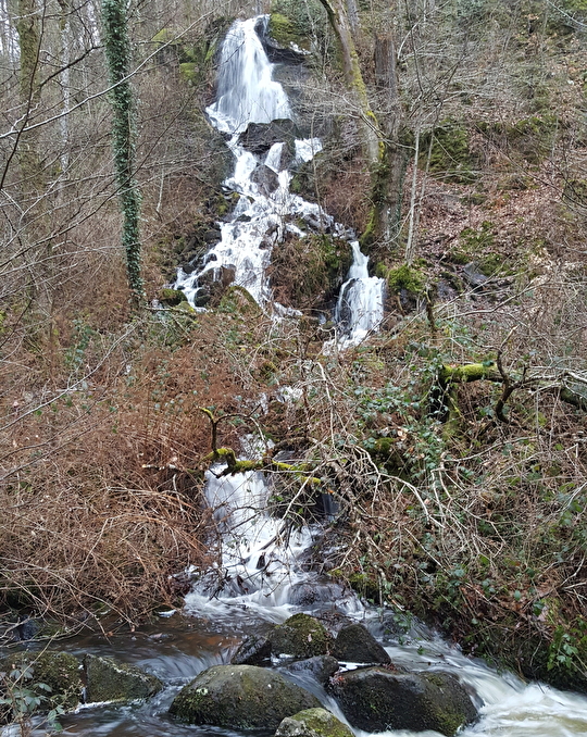 Suivez le ruisseau de la Toison qui longe le chemin, après une lègère montée, vous apercevrez la cascade qui dévale sur la droite.