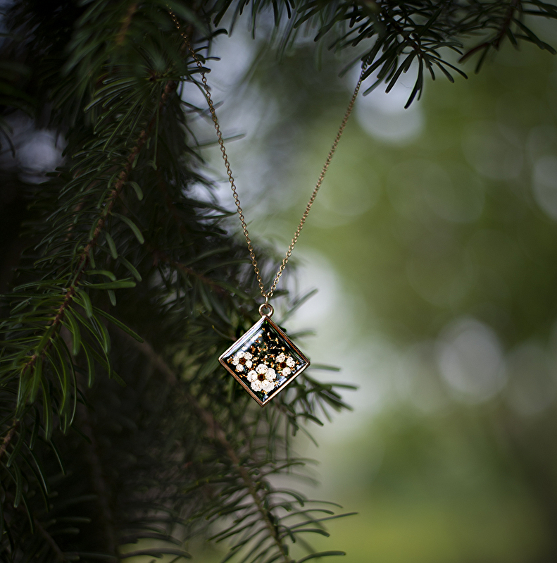Des créations artisanales, fabriquées à la main dans mon atelier niché au cœur du parc naturel du Morvan. Chaque petite fleur est cueillie délicatement à la main et passée dans une presse pour être séchée et pouvoir ensuite être coulée dans la résine. Mes créations uniques, inspirées de la nature, sont déclinées en petites collections au rythme des saisons. Chaque accessoire est fait-main en France avec savoir-faire, patience et amour dans une démarche authentique. Chaque création est inspirée de la nature, des plantes et fleurs qui nous entourent et invite à la poésie.