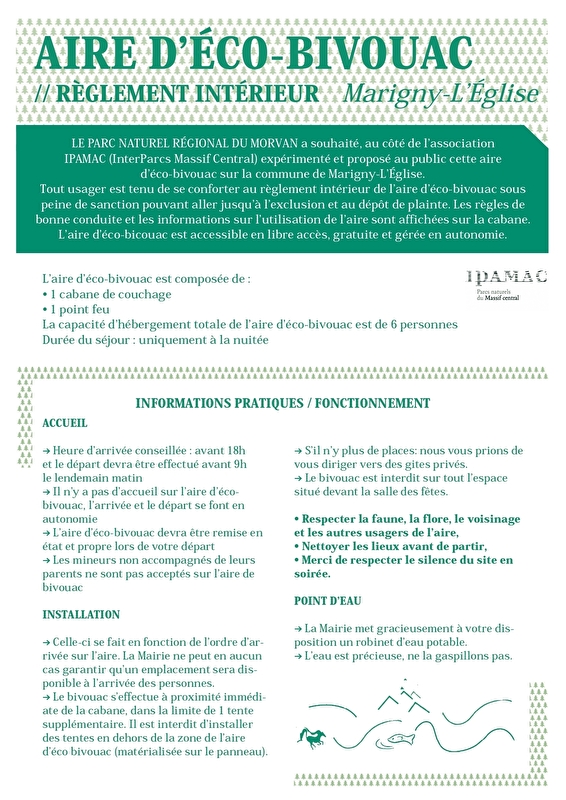 Cette cabane éco-bivouac vous accueille au cœur du village de Marigny-l’Église, juste à côté de la mairie et à deux pas du GR13.