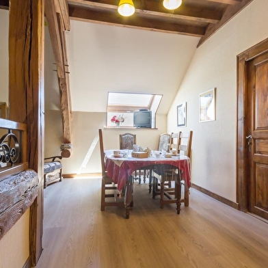 Dans un cadre calme et verdoyant, 3 chambres 2 personnes et une chambre 3 personnes situées au 1er étage d'une maison ancienne, à côté de celle des propriétaires. Belle vue sur la campagne. Salle de séjour et salon à disposition. Coin-kitchenette avec micro-ondes, frigo, plaques. Parking. Jardin. WIFI.