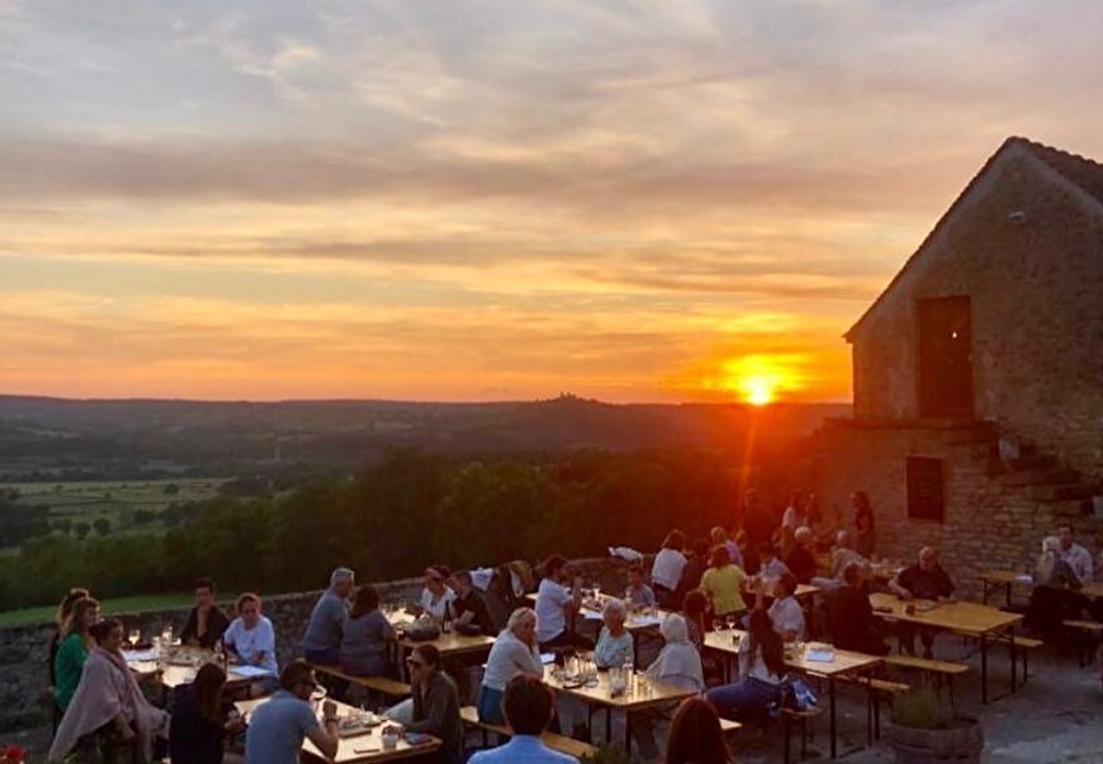 Bar à vin estival avec vue magique sur la colline de Vézelay. De 18 h au coucher du soleil, venez déguster les vins du domaine accompagnés de délicieux produits locaux, sur notre terrasse face à Vézelay.