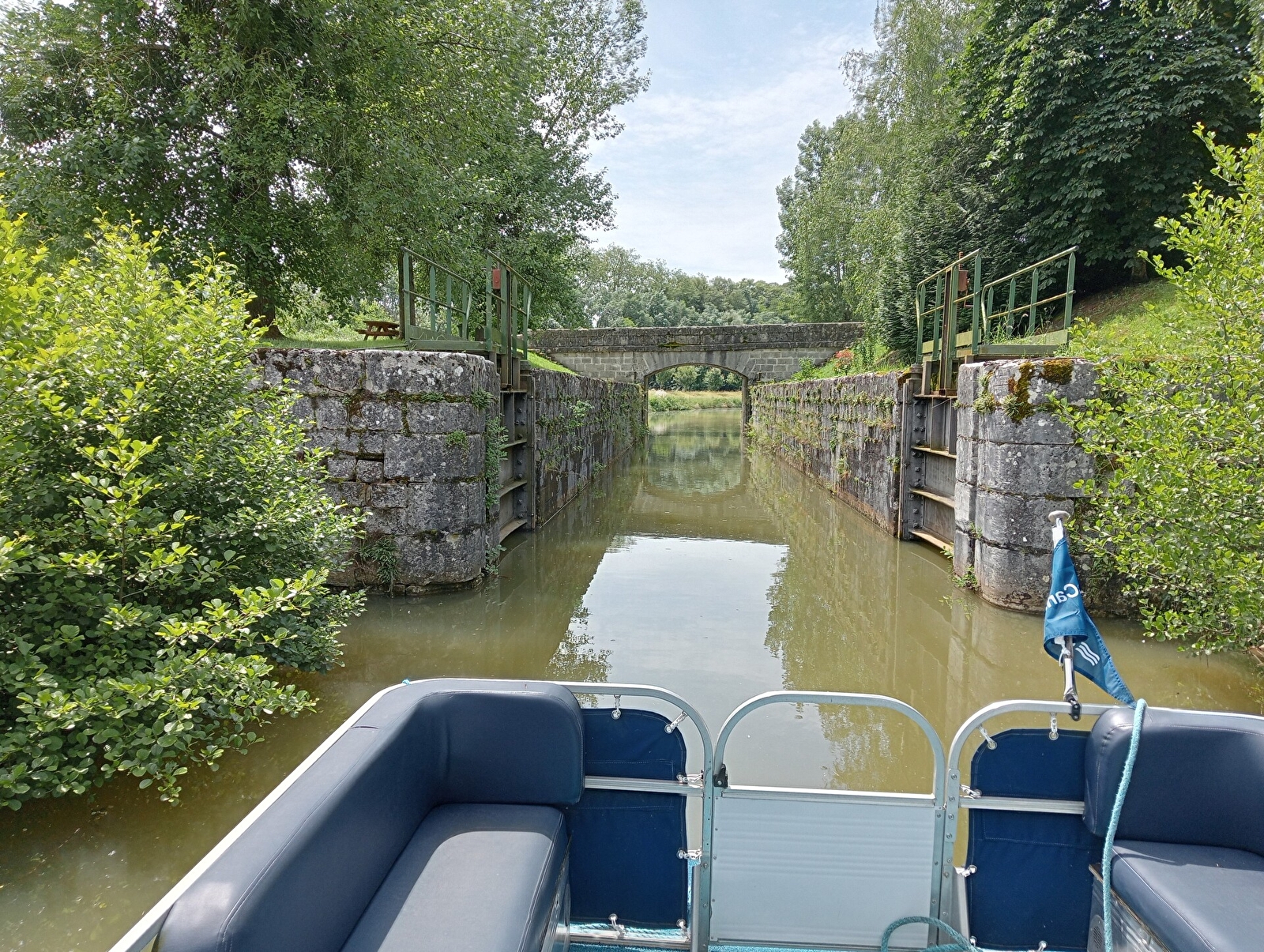 Passages des écluses de 9h00-12h00 et 13h00-19h00.