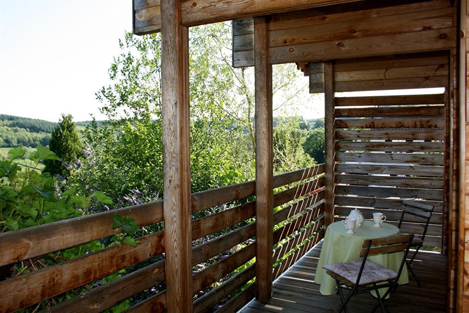 Ravissant chalet contemporain (construit en 2004) adossé "en balcon" & "belvédère panoramique", à flanc de coteau sud-est bien exposé, au sein d'un paisible hameau rural résidentiel dominant la verdoyante vallée du Méchet (& sa rivière poissonneuse). Calme & totale tranquillité en pleine campagne morvandelle & sa montagne douce, au cœur même du parc et du massif du Morvan, blotti à l'orée immédiate des bois au creux d'un bucolique vallon préservé de champs & prairies cerclés de vastes massifs forestiers sauvages (à parcourir lors de reposantes balades à pied ou VTT). Magnifique écrin préservé de nature & verdure. Le privilège de possibilité d'observer la faune sauvage sur place (chevreuils, renards, blaireaux, sangliers etc…). Cadre paysagé totalement enchanteur, 100% relaxant & ressourçant. Jardin naturel arboré & végétalisé, niché derrière une "barrière végétale", comprenant un espace terrasse ombragé sous un murier & une "mini prairie" dotée d'une balançoire (sise en contrebas du chalet). Double large balcon panoramique abrités. Superbe vue dégagée sur la campagne environnante dont la cité d'Autun & ses lumières nocturnes s'affichant en toile de fond. Magnifique panorama & paysages. Spacieux gîte de bon confort. Chaleureux & très douillet cachet montagnard boisé. Ambiance douce & dépaysante. Agréables chambres lovées sous les toits en mode "cocon cabane".