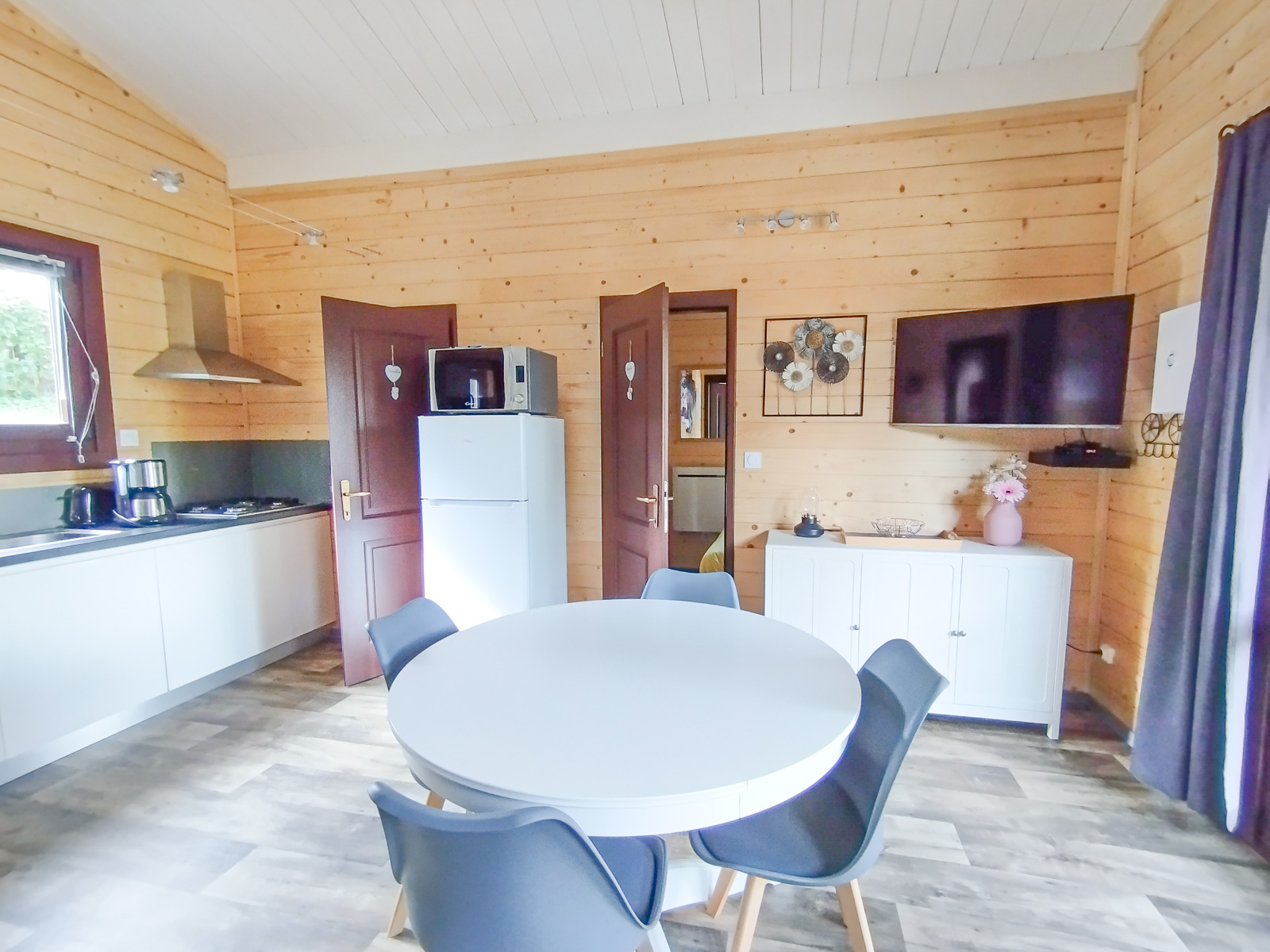 Tout en haut du domaine, au calme et à quelques pas du lac, ce nouveau chalet très soigné aux couleurs claires comme la Licorne blanche, est parfait pour une famille. Beau mobilier, cuisine toute équipée, grand divan d’excellente qualité, cuisson gaz, frigo haut et four-micro-onde combiné. Idéal pour 4 personnes, il peut recevoir jusque 6 personnes : 1 chambre avec 1 lit double, 1 chambre avec 2 lits individuels, 1 salon en alcôve avec un divan convertible. Très belle salle de douche en coin et WC séparés.