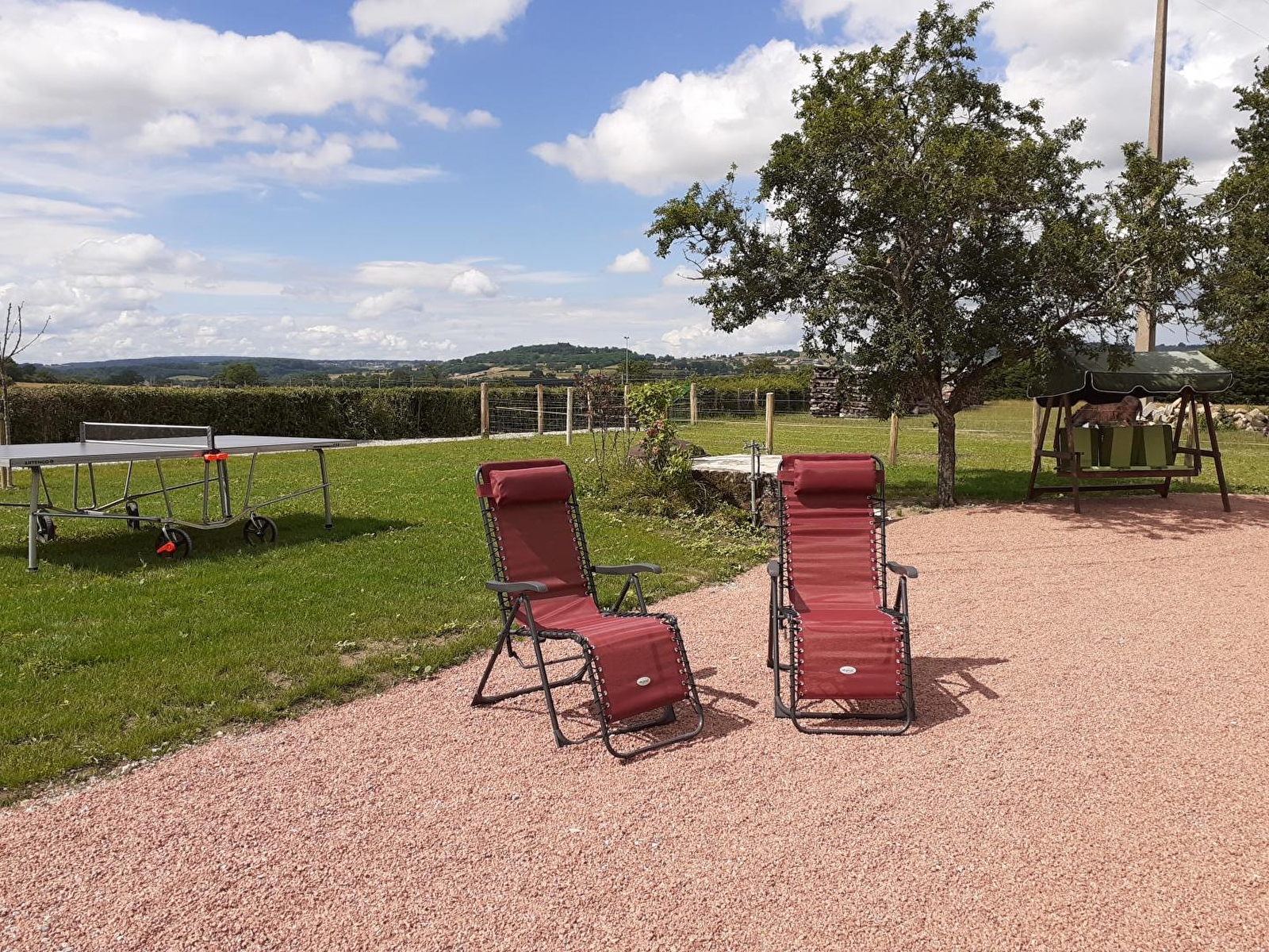 Composition : Maison individuelle de plain-pied jouxtant l'habitation des propriétaires (indépendance totale sans vis-à-vis). Wifi. Chauffage PAC. Cheminée. Séjour-cuisine-salon, 3 chambres dont une avec TV (lit 2 p. 160x200cm / lit 2 p. 140x190cm / lit électrique 2 p. 140x190cm), 2 salles d'eau (douches / dt une PMR avec Wc), Wc indépendant. Jardin + terrasse + terrain pétanque + ping-pong + local vélos + parking privés. Commerces de proximité 1,5km. Ligne TGV passe à 150m du gîte.