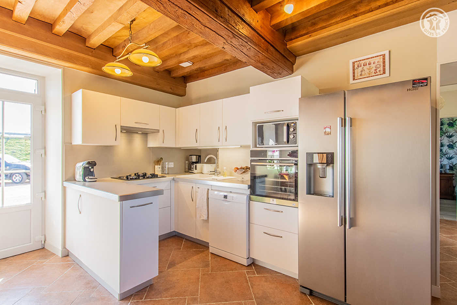 Ravissante ferme morvandelle de 1819 pétrie d'histoire (« maison de famille » depuis toujours, ayant abrité jadis le bistrot du village), soigneusement revisitée dans les règles de l'art, en confortable villégiature. En pleine campagne autunoise, au cœur d'un petit hameau rural blotti en lisière immédiate de bocage (où paissent les paisibles vaches charolaises en saison) & d'un mini pré accueillant quelques moutons & Adèle, l'ânesse des propriétaires, à 2 km du majestueux Château de Sully du XVIe (classé MH), l'un des plus beaux édifices privés français ouvert au public, lieu de naissance de Mac Mahon président de la république française. Blotti au creux de la verdoyante vallée de la Drée (& sa rivière poissonneuse), cet ancien village minier dispose d'un riche patrimoine (ancienne église gothique chapelle funéraire des Mac-Mahon, monastère & prieuré du XIIIe, plusieurs chapelles, vestiges miniers…) et d'un bucolique cadre paysagé de montagne douce, alternant bocage vallonnée & vaste massif forestier (dont la forêt communale de 300 ha certifiée PEFC). Spacieux gîte de grand confort. Chaleureux cachet campagnard aux accents contemporains marié à une restauration patrimoniale soignée (monumental manteau de cheminée en pierre, plafonds à la française & poutres d'origine). Beaucoup de charme & caractère. Ambiance ultra douillette. Large terrasse exposée & ombragée (expo ouest) ouverte sur un agréable jardin végétalisé & fleuri, disposant d'un terrain de pétanque et d'une table de ping-pong.