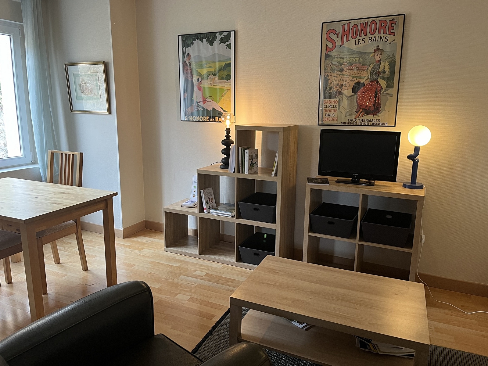Appartement situé dans la station thermale de Saint-Honoré-les-Bains au coeur du Morvan. Cet espace de 44 m² au 1er étage peut accueillir 2 personnes dans 2 lits de 90. Il est situé à 10 ou 15 minutes de la station thermale et à proximité du centre ville. Il bénéficie d'une kitchenette (plaque vitrocéramique, frigidaire, four, micro-onde, etc.), séjour - salle à manger, une chambre et une salle d'eau avec WC.