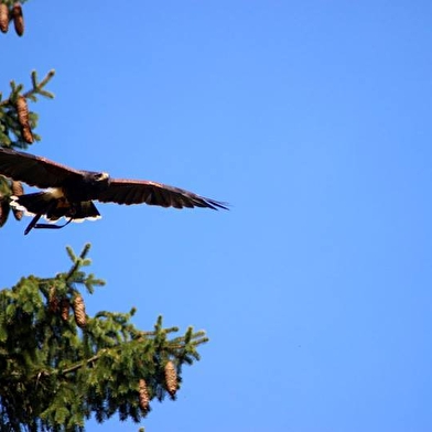 Une balade hors du temps en compagnie de rapaces en liberté, qui respecte les rythmes de chacun : des oiseaux, des enfants, des amoureux de la nature, des photographes, de ceux qui traînent les pieds, de ceux qui traînent le nez en l'air, de ceux qui ont 1000 questions, de ceux qui aiment le silence...