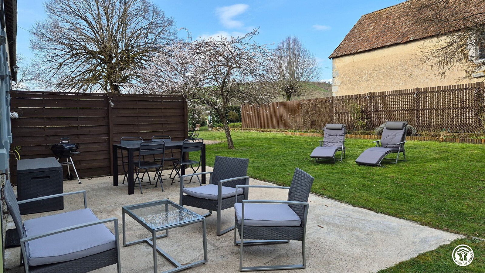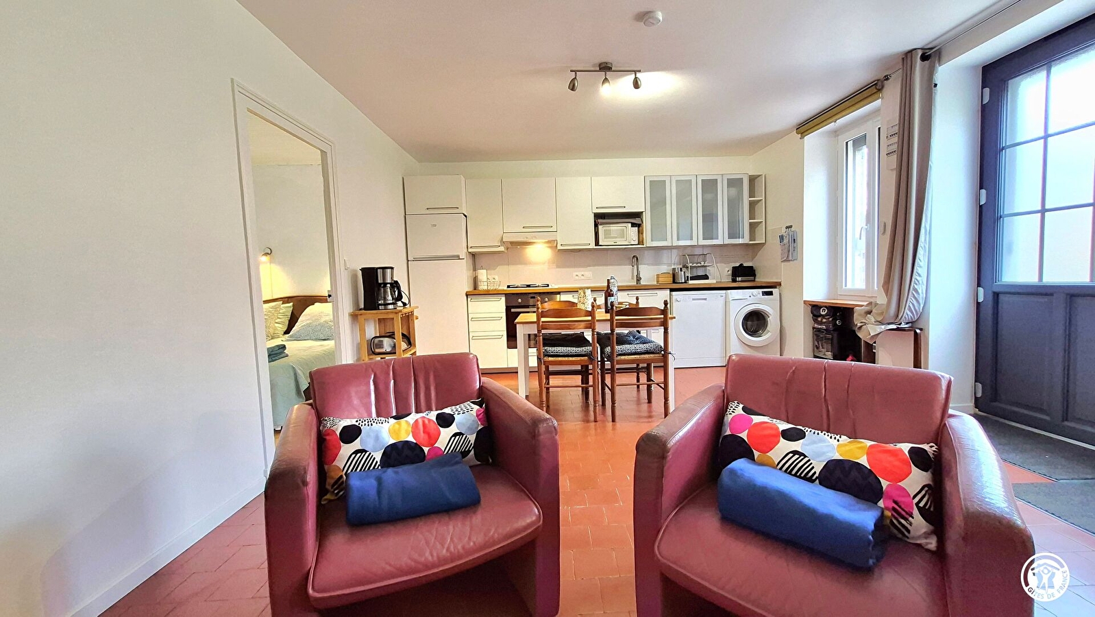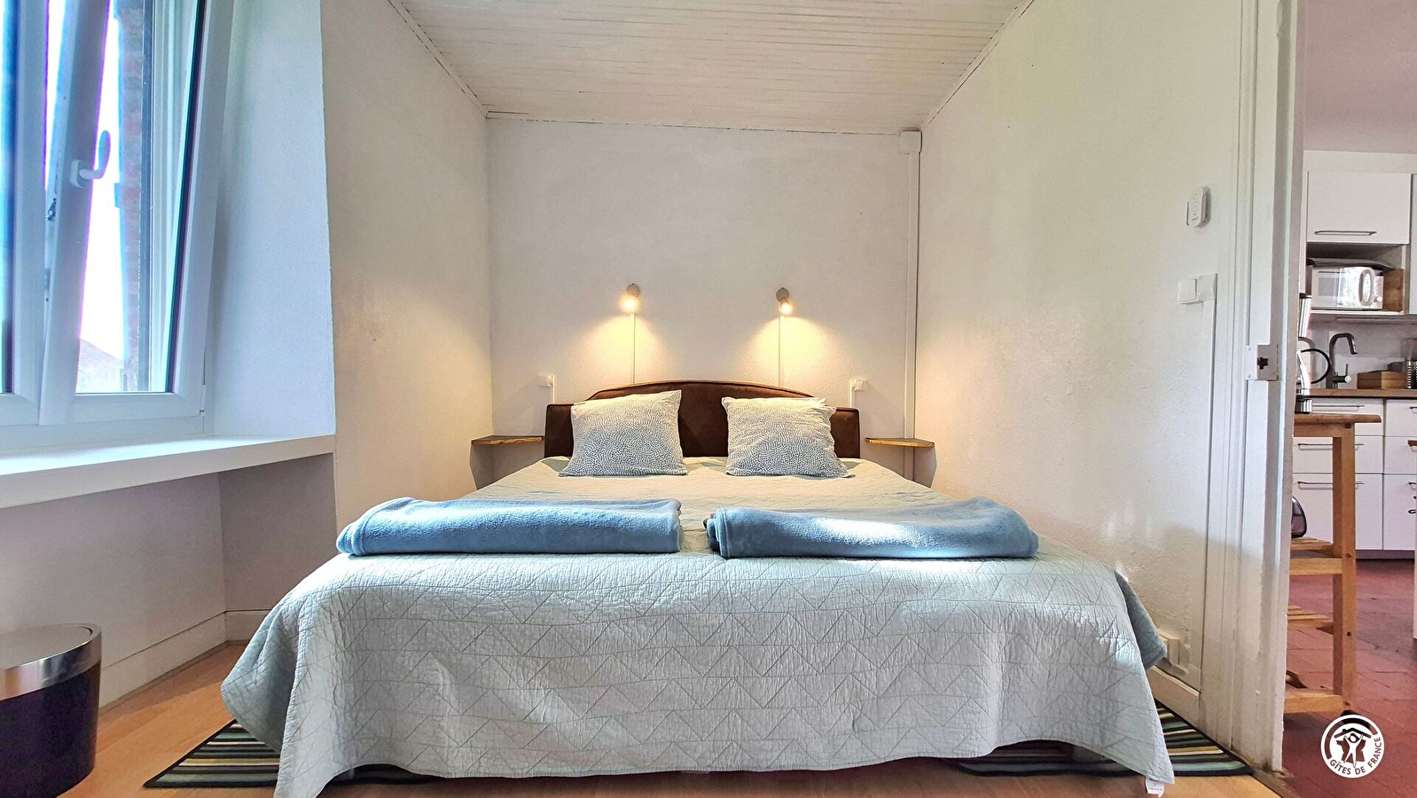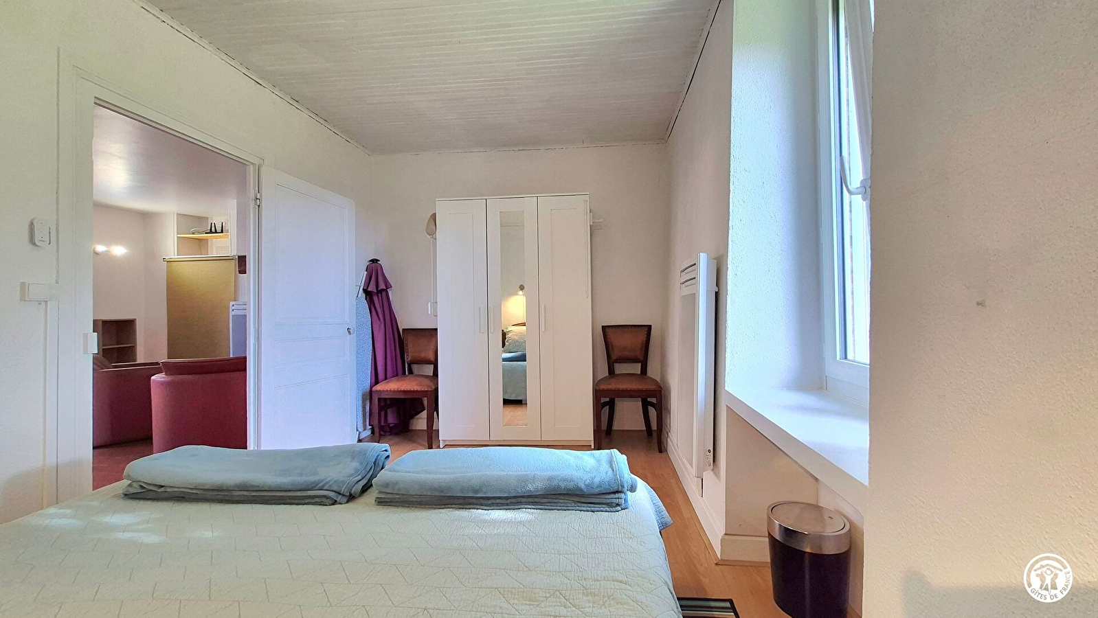 Le gîte est de plein pied, aménagé pour faciliter le quotidien des séniors et mitoyen à l’hébergement de la propriétaire.