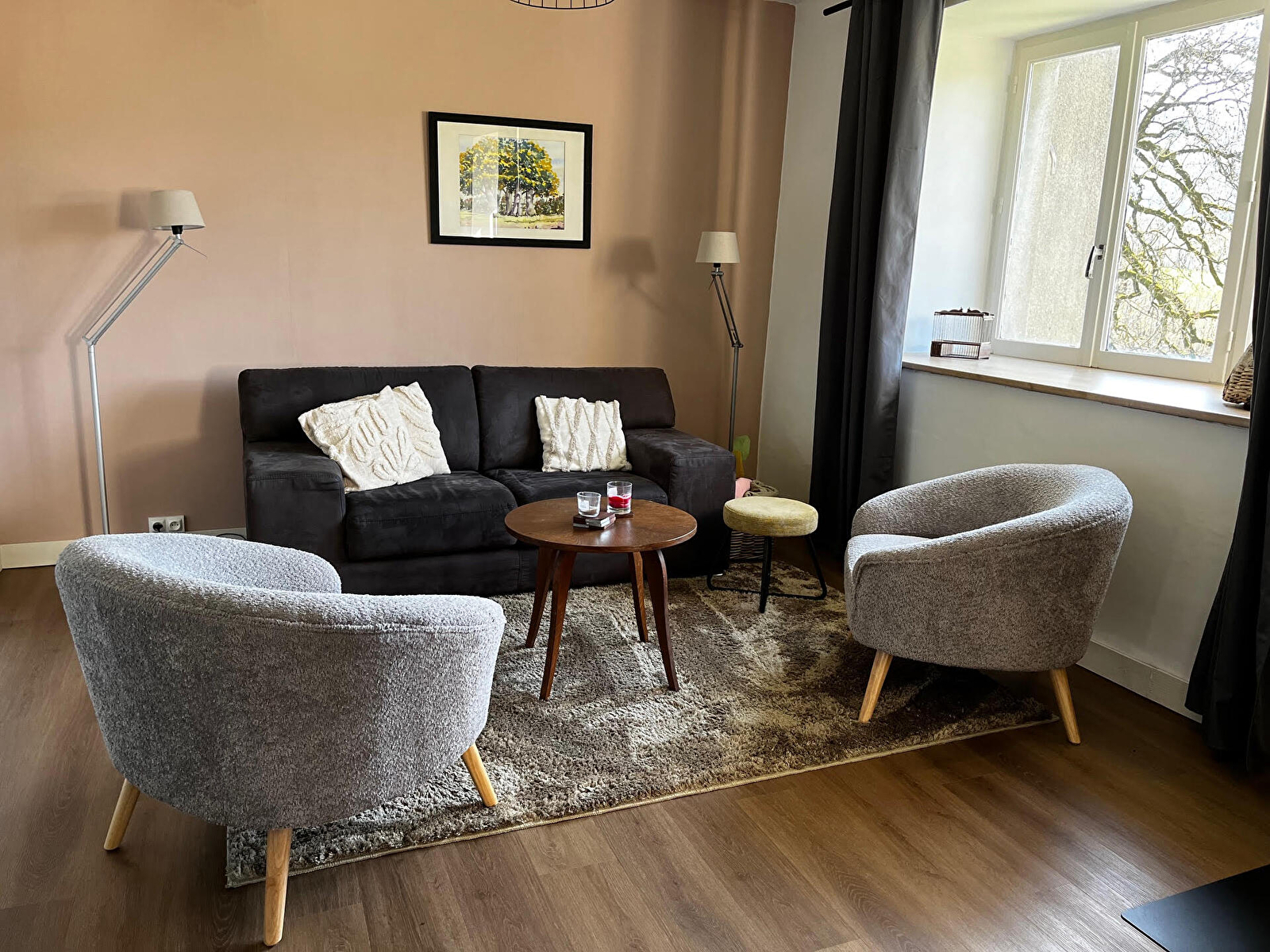 Une partie de la ferme située à côté du château a été transformée en gîte (60 m²). Ce gîte, tout comme le château, donne sur la cour intérieure. Depuis le salon, vous profitez d’une superbe vue sur la vallée et la rivière Yonne.