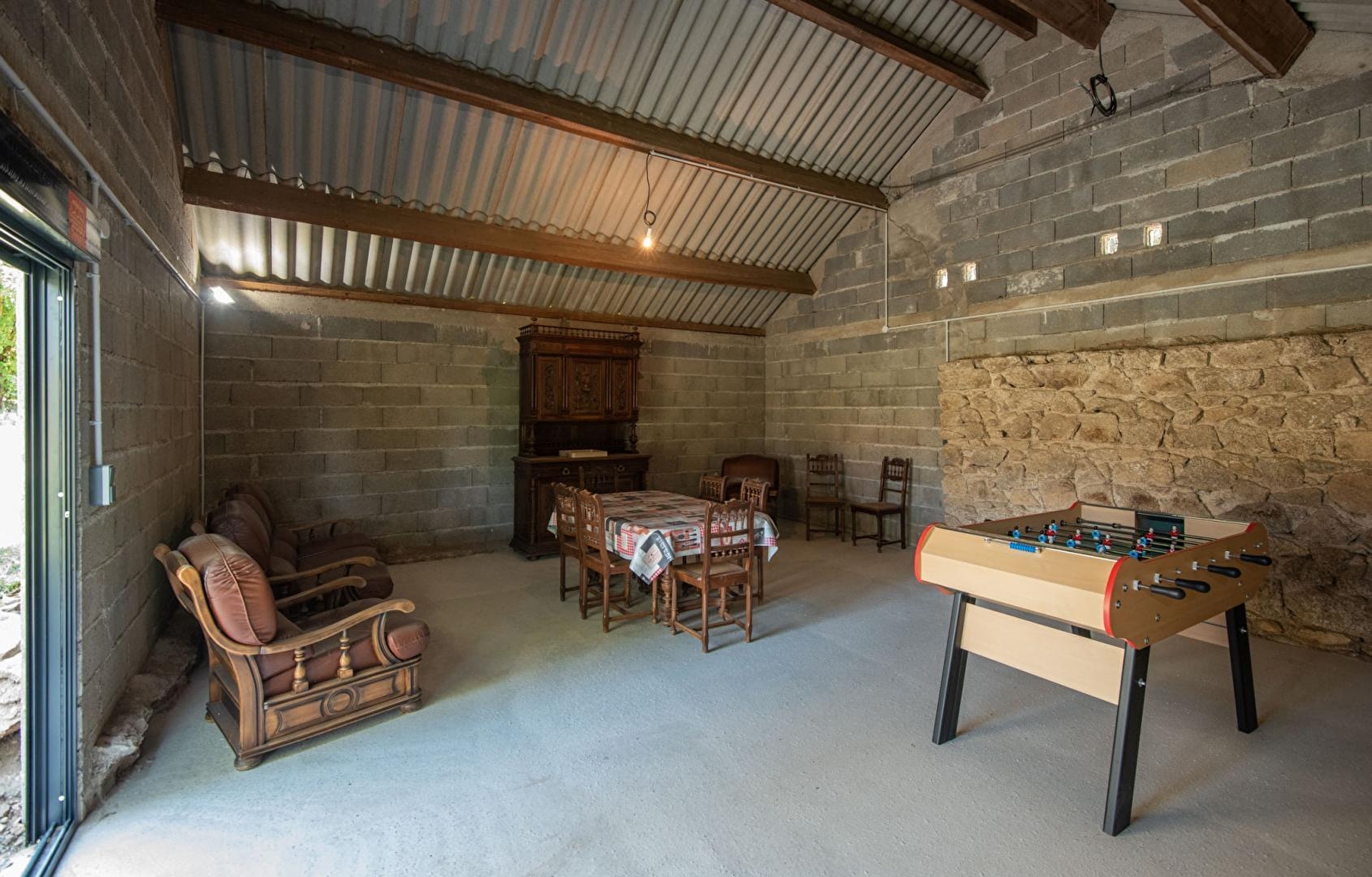 Composition : Maison individuelle. Wifi (fibre). Chauffage central fioul. Buanderie en sous-sol (accès par l'extérieur). Rdc : séjour-cuisine, salon, sdb (douche + baignoire), Wc indépendant. 1er étage : 4 chambres (3 comprenant 2 lits 1 p. 90x190cm jumelables en lit 2 p. 180x190cm / lit 2 p. 140x190cm), salle d'eau (douche/Wc). Terrain clos (5000m²) + terrasse abritée + terrasse sur cour (gravier) + terrain pétanque + local abrité non chauffé avec spa 6 p. (accès mai à septembre selon météo) & babyfoot + local vélos + parking privatifs. Petits commerces & supermarché à 12 km.