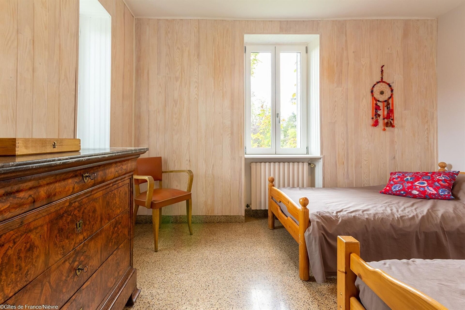 Maison individuelle dans une petite commune morvandelle avec un jardin en partie clos, tonnelle, verger. En rez-de chaussée surélevé, pièce à vivre avec salon ayant un canapé convertible pour 2 personnes, télé et poêle à bois, cuisine équipée, 2 chambres dont 1 avec 1 lit 160x200 et accès direct sur une petite terrasse, et l'autre avec 2 lits 90x190; une salle d'eau (douche grande dimension) et un wc séparé.
