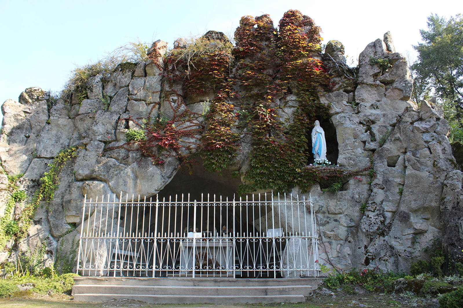 Il accueille une grotte, réplique de la grotte de Lourdes, un calvaire et un chemin de croix.