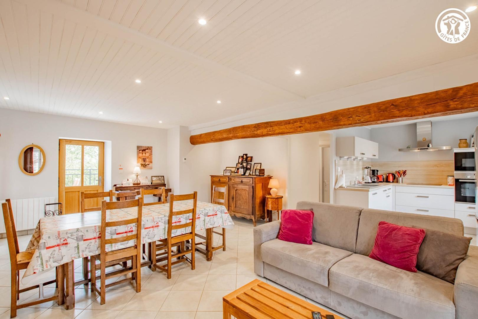 Composition : Maison comprenant 2 gîtes + logement des propriétaires (indépendances totales). Wifi (fibre). Chauffage électrique + cheminée. Gîte au 1er étage : séjour-cuisine-salon (canapé convertible 2 p. 140x190cm en appoint), 2 chambres (lit 2 p. 160x190cm / 2 lits 1 p. 80x200cm jumelables en lit 2 p. 160x200cm), salle d'eau (douche), Wc indépendant. Balcon-terrasse privatif. Terrain clos commun (4000m²) + local vélos en commun. Parking privé. Commodités dont supermarché 5.5 km.