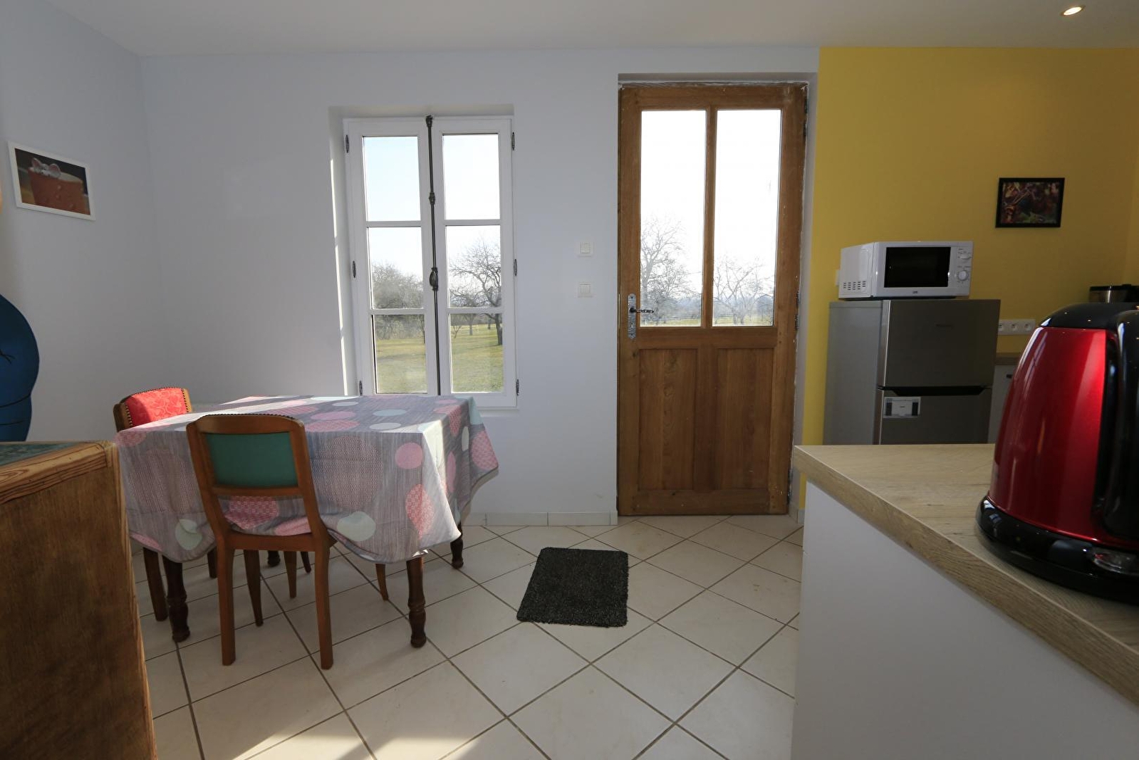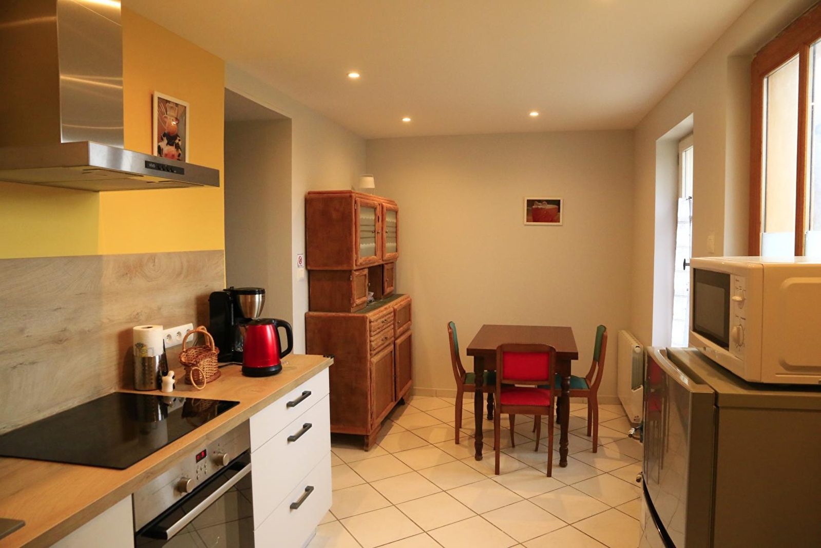 Composition : Maison comprenant 2 gîtes + logement des propriétaires (indépendances totales). Wifi (fibre). Chauffage électrique. Gîte de plain-pied en rdc : cuisine, séjour-salon (canapé convertible 2 p. 140x190cm en appoint), 1 chambre (lit 2 p. 160x200cm), salle d'eau (douche/Wc). Terrasse privative en gravier. Terrain clos commun (4000m²) + local vélos en commun. Parking privé. Commodités dont supermarché 5.5 km.