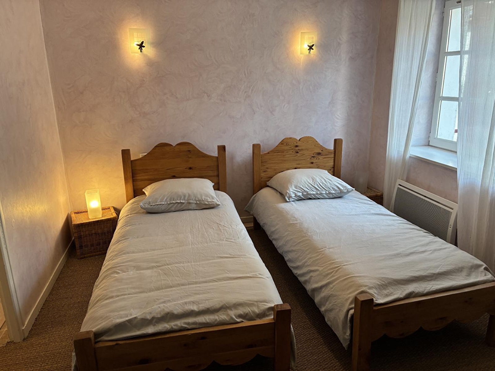 Composition : Maison de village mitoyenne sur 2 niveaux. Wifi (fibre). Chauffage électrique + poêle à bois. Rdc : séjour-cuisine-salon (canapé convertible 2 p. de 140x190cm en appoint), buanderie, WC indépendant. 1er étage : 3 chambres (lit 2 p. 140x190cm / 2 lits 1 p. 90x190cm / lit 2 p. 140x190cm) avec salle d'eau privative (douche/WC). Terrasse + cour en gravier (terrain de pétanque) + parking privatif non couvert (3 places). Petits commerces sur place. Commodités dont supermarché à 12 km. Recharge de véhicule électrique non autorisée sans l'accord du propriétaire.