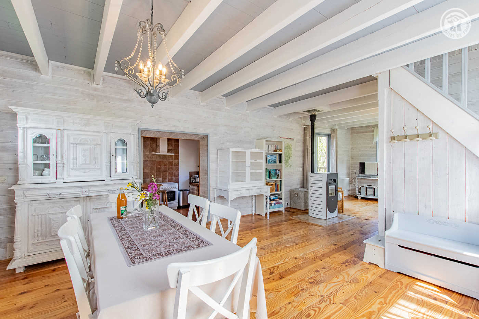 Composition : Maison individuelle sur 2 niveaux (accès par chemin empierré carrossable sur 500m). Wifi. Chauffage électrique + poêle à granulés bois. Rdc : séjour-cuisine-salon, salle d'eau (douche/Wc). 1er étage : 3 chambres dont 2 en enfilade (lit 2 p. 140x190cm + lit 1 p. 90x190cm d'appoint / 2 lits 1 p. 90x190cm / 2 lits 1 p. 90x190cm), Wc indépendant. Balcon-terrasse + terrasse + local vélos + terrain clos (4000m²) + parking privatifs. Commerces 8 km. Supermarché 12 km.