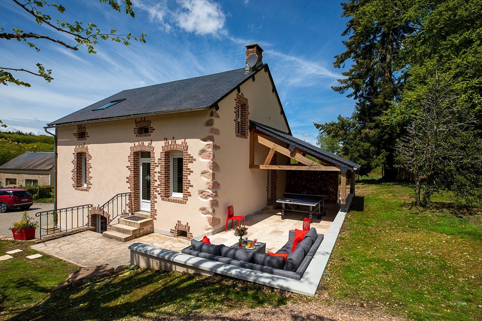 Authentique maison forestière de caractère du début XXe - chargée d'histoire & soigneusement restaurée - blottie en pleine nature à flanc de coteau ouest exposé, en lisière de prairies & d'une vaste forêt (dont 5 ha de bois privé doté de miradors pour observer la faune sauvage : renards, chevreuils, sangliers...), au creux d'un bucolique vallon du Haut Morvan, apaisant cadre paysagé de montagne douce. Mini hameau rural lové à 6 km du charmant bourg commerçant d'Anost (nombreuses commodités), riche d'une église romane classée du XIIe (abritant un célèbre chef d'œuvre…) & résidence de nombreux artistes (plasticien, sculpteur…). Spacieux gîte de grand confort. Très élégant cachet contemporain, cossu & raffiné. Beaucoup de charme & caractère. Cosy & ultra cocooning. Équipement complet de grande qualité. Vaste espace bien-être (baignoire à bulle chromothérapie / sauna / douche & WC). Agréable jardin clos de 2000m² doté d'un large espace terrasse exposé (en partie abrité), d'un mini verger (pommiers, poiriers, pruniers, cerisiers, pêcher... / cueillette possible), d'un terrain de pétanque & d'une aire de jeux enfants hyper complète (toboggan, balançoire, cage écureuil, panier basket + cage foot & ping-pong). Belle vue dégagée sur la campagne environnante.