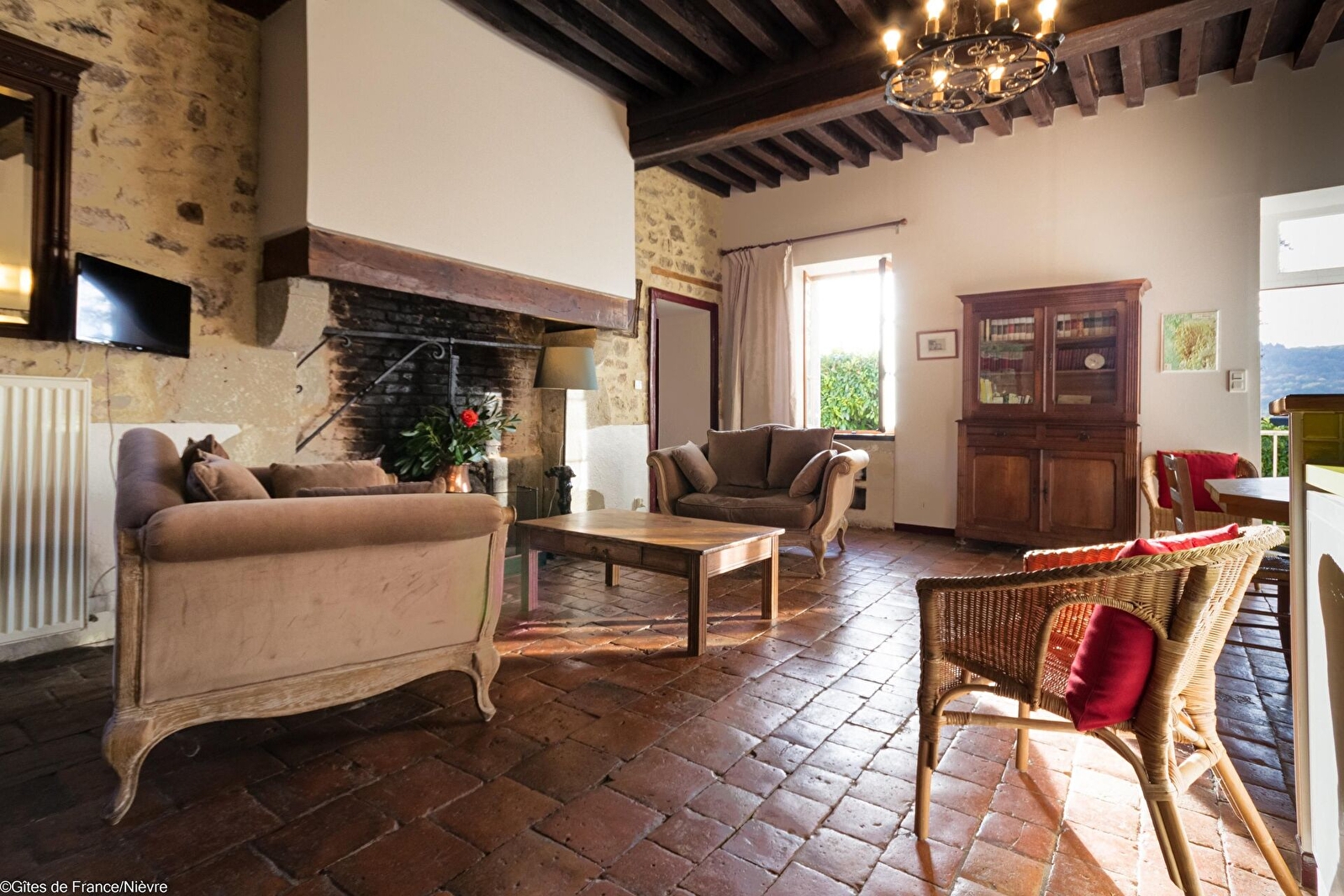 Dans le Parc Naturel Régional du Morvan, gîte dans une maison indépendante donnant sur le parc du Château : grand séjour, cuisine américaine, 1 chambre avec 4 lits 90 et 1 chambre avec 1 lit 160x200, salle d'eau avec grande douche, chauffage central au fioul en supplément. 1 lit bébé, 1 chaise haute et 1 baignoire bébé à disposition. Jardin privatif d'environ 500m², non clos, avec accès aux 18 ha du parc, dépendances. Parking privé. Possibilité de louer également le gîte 58G1037 pour un total de 9 personnes. A proximité des Lacs des Settons, de Chaumeçon et de Pannecière, canoë-kayak sur le Chalaux et des sites spirituels et culturels de Vézelay (Basilique classée au Patrimoine Mondial de l'Unesco), La Pierre qui Vire et son Abbaye, Bazoches (demeure de Vauban), Bibracte et son Centre archéologique européen.