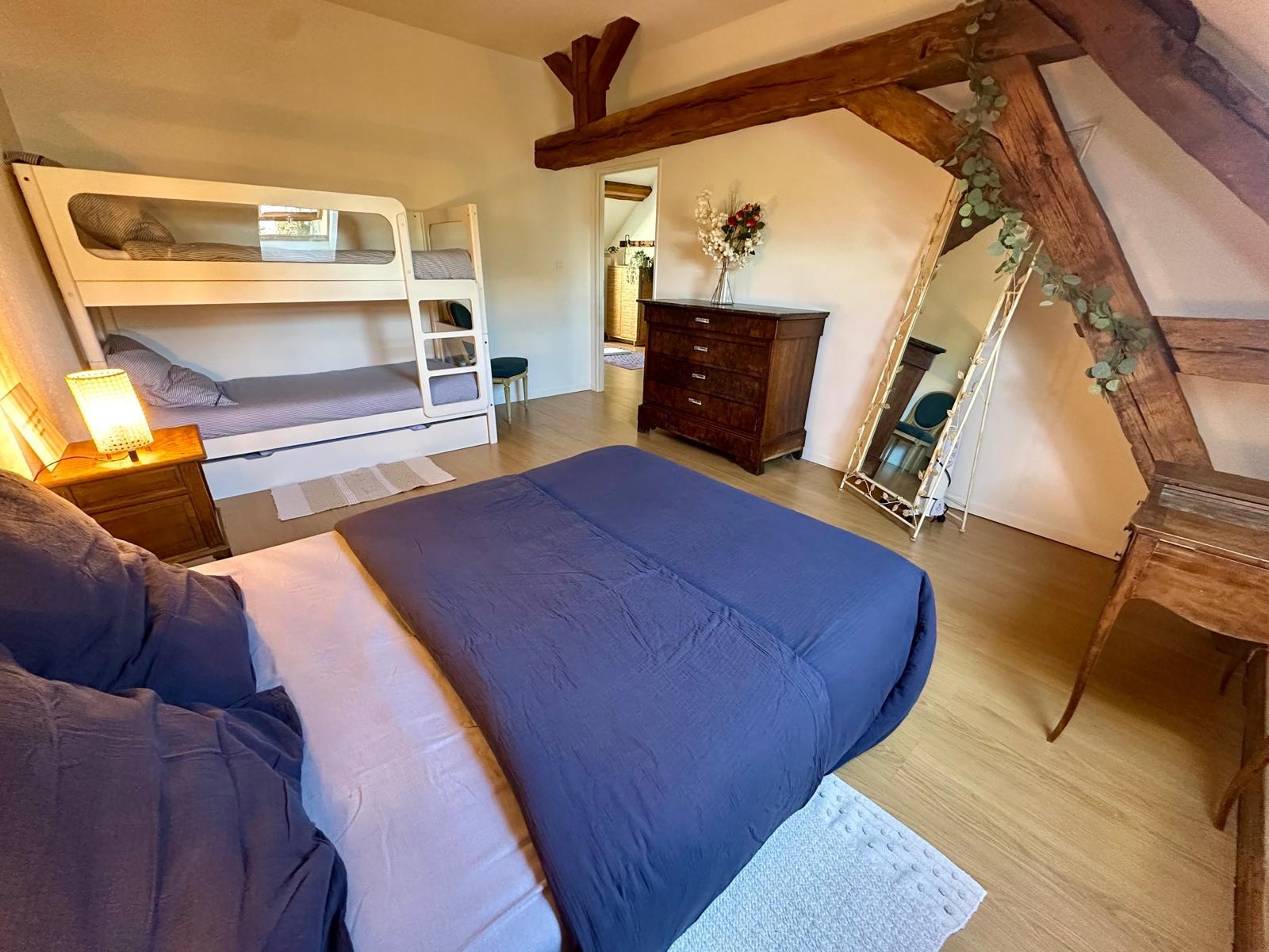 Nichée au cœur de la Bourgogne, à Autun, notre maison au style rustique et chaleureux vous accueille dans un cadre authentique et reposant. Avec ses 170 m² habitables et ses 3 chambres réconfortantes, le gîte accueille confortablement 10 personnes et jusqu'à 12 grâce à nos canapés convertibles, pour que personne ne manque à l'appel lors de vos réunions de famille ou séjours entre amis. Entièrement rénové dans le respect de son caractère d'origine, le gîte allie le charme de l'ancien au confort moderne : poutres apparentes, pierres de Bourgogne, et équipements contemporains.