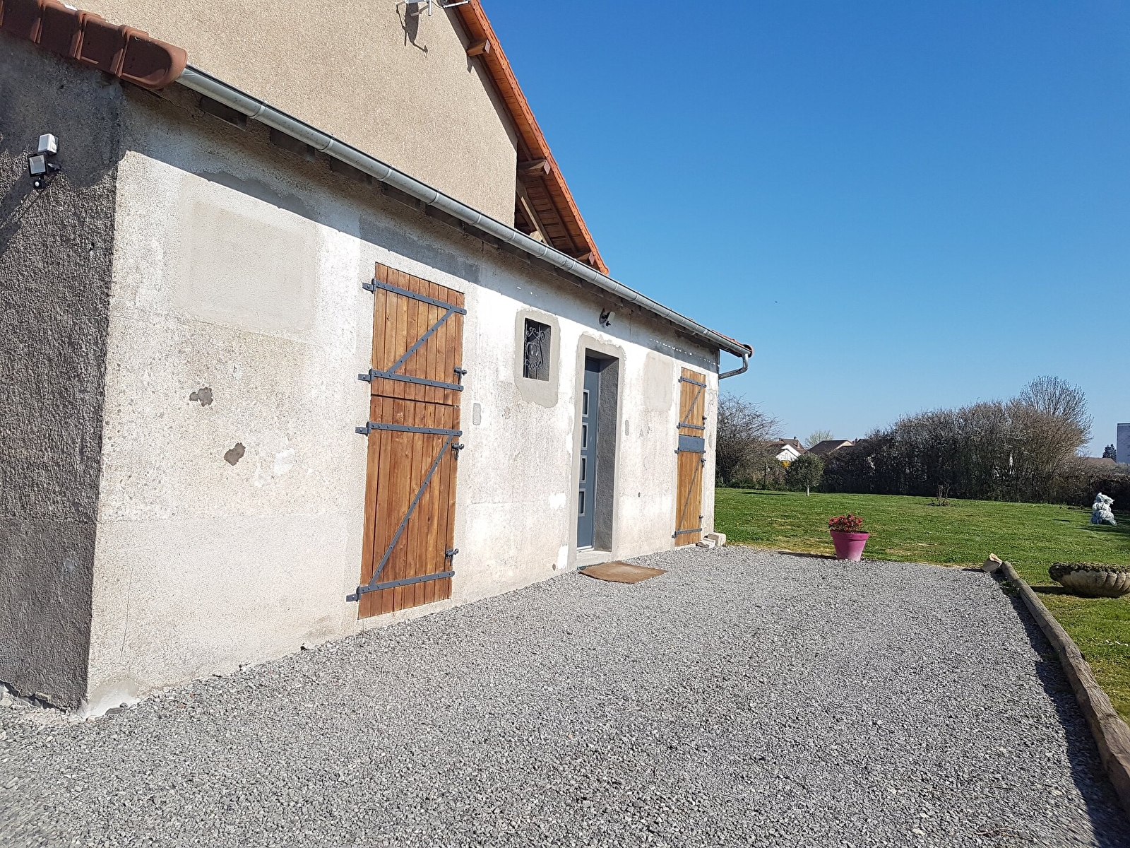 Ancienne écurie de chevaux transformée en maison d'habitation rustique et moderne.