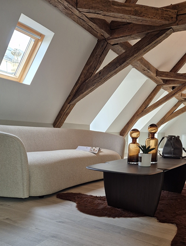 Ce vaste appartement, possède une grande hauteur sous plafond. Mix de design flamand, de matières nobles & brutes. Un havre de paix pour se ressourcer ou se retrouver en amoureux.