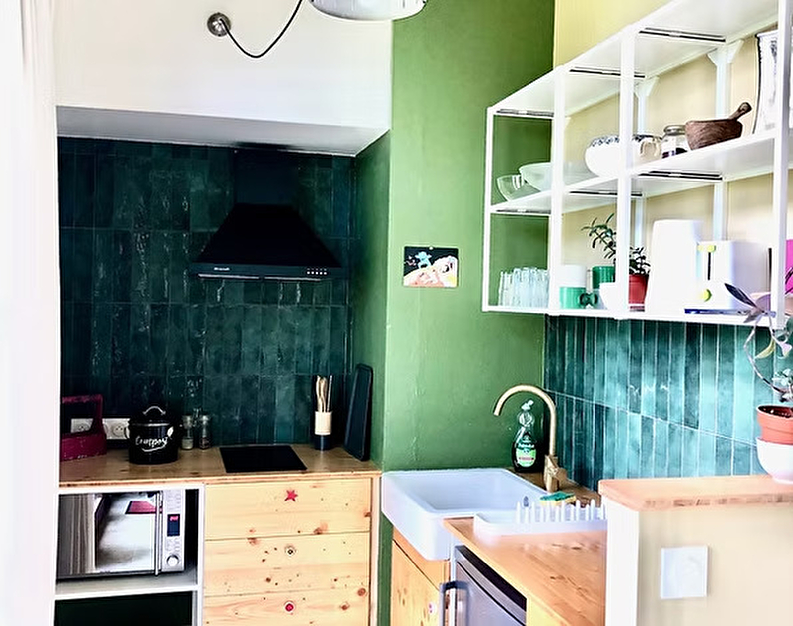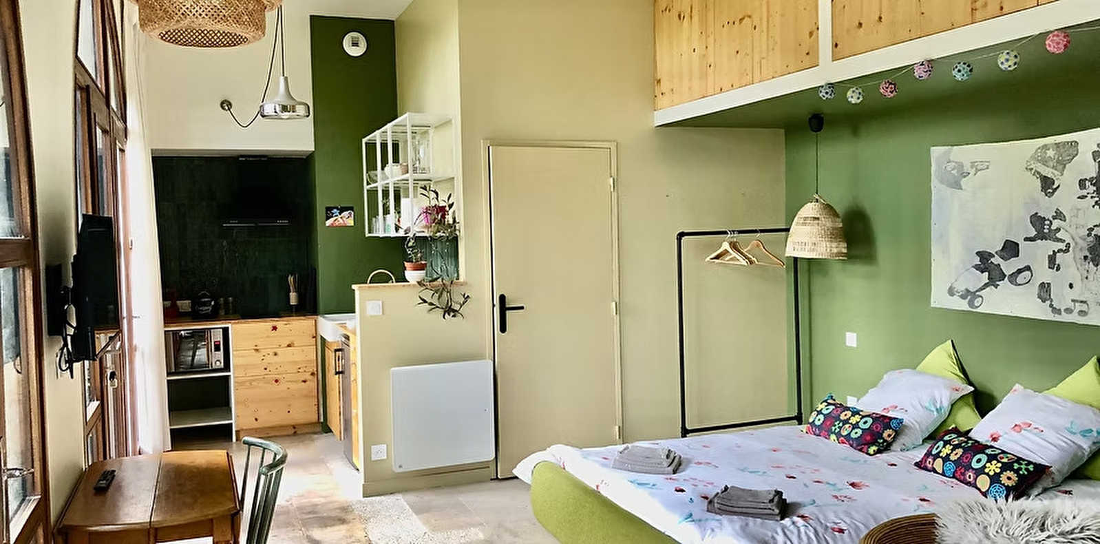 Le studio est équipé d’un four micro-onde, réfrigérateur avec freezer, 2 plaques induction, cafetière électrique, bouilloire, grille-pain... Un espace buanderie extérieur accueille un lave linge. Wi-fi, 4G, TV à disposition.