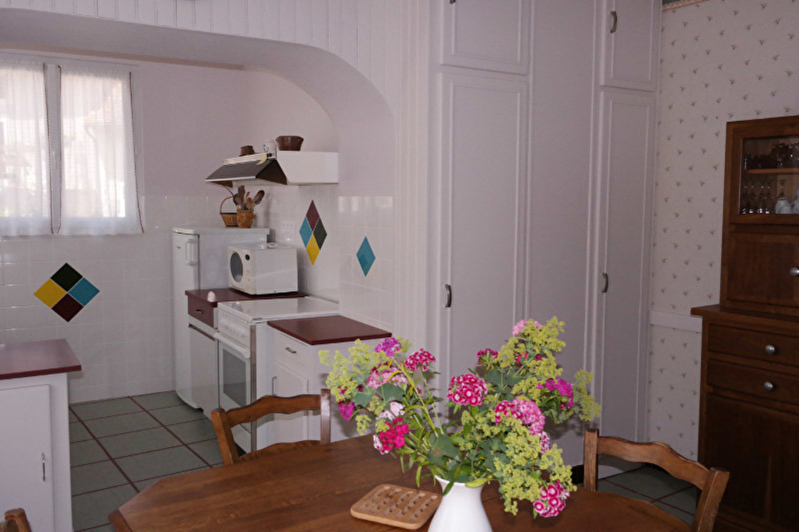 Composition : Gîte de plain-pied mitoyen à l’habitation des propriétaires (totale indépendance). Wifi (fibre). Chauffage central gaz. Séjour-cuisine, séjour-salon, 2 chambres (lit 2 p. 140x190cm / lit 1 p. 90x190cm + lit 2 p. 140x190cm), salle d’eau (douche), Wc indépendant. Jardinet + parking privatifs. Local vélos. Accès en commun au terrain des propriétaires (cour + jardin). Supermarché 1.5 km. Gare 3 km.