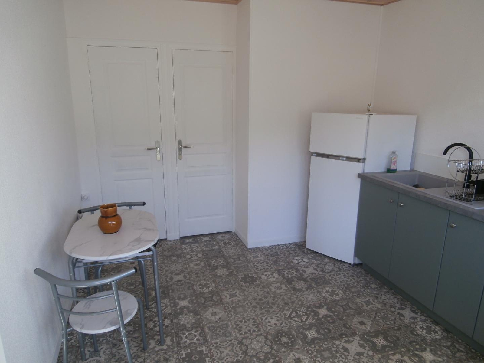 Composition : Maison individuelle voisinant l'habitation des propriétaires et l'autre gîte de la propriété (totale indépendance). Wifi (fibre). Chauffage électrique. Gîte de plain-pied en rdc : cuisine, séjour-salon (lit 2 p. 140x190cm), 1 chambre (lit 2 p. 140x190cm), salle d'eau (douche), Wc indépendant. Cour-terrasse close + parking privés. Petite épicerie 3 km. Commerces 7 km.
