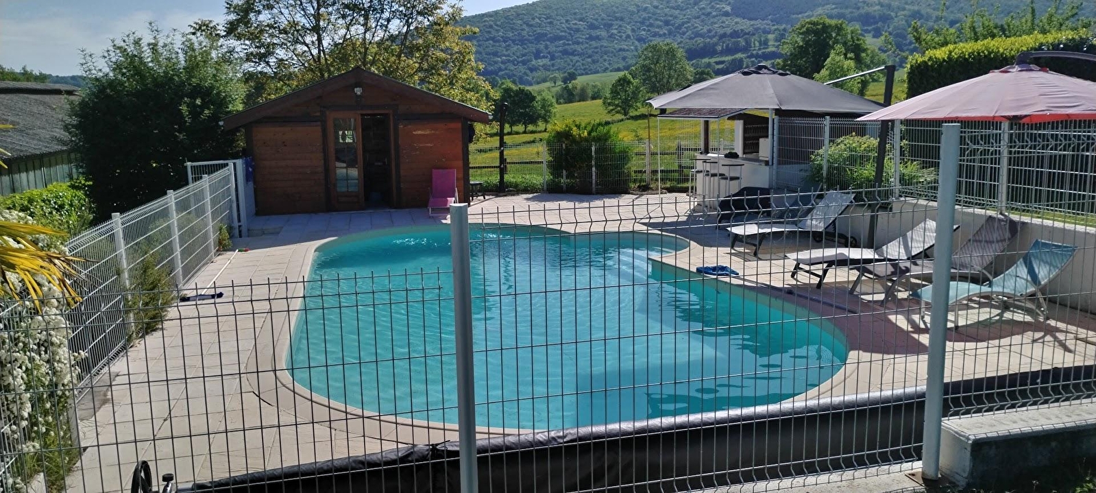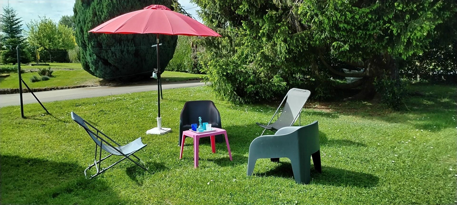 Tous deux passionnés de randonnée & de VTT, Jacqueline & Bernard vous accueillent au sein d’une ravissante demeure "fifties" (datant des années 50), intégralement restaurée & réhabilitée, nichée au calme sur une vaste propriété chargée d’insolite "histoire familiale" (qui accueillit jadis une mine de "mica", minerai plus connu sous le nom de "poudre d’or", exploitée par l’arrière-grand-père de la propriétaire de la fin du XIXème siècle aux années 40), au sein d’un paisible hameau rural résidentiel jouxtant le "cœur de bourg" du petit village typique de Mesvres ("Site Clunisien" abritant les vestiges d’un ancien Prieuré du Xème siècle, sis à deux pas). Calme & tranquillité, blotti en pleine douce campagne morvandelle vallonnée, en lisière d’un bucolique plateau de prairies bocagères boisées, traversé par une petite rivière poissonneuse (en partie protégée en ZNIEFF pour ses richesses floristiques & faunistiques), en toute proximité d’une belle forêt sauvage. Spacieux gîte de bon confort. Chaleureux cachet campagnard aux accents contemporains mêlant "douillette rusticité" à l’esprit d’une douce "maison de famille". Large terrasse exposée sud-ouest ouverte sur un agréable jardin privatif. Accès à l’intégralité de la vaste propriété ultra soignée de 3500m² (en commun), engazonnée, végétalisée & arborée, offrant une belle piscine chauffée de 10x4.5m (avec douche), un terrain de pétanque, balançoire & baby-foot "outdoor" abrité.