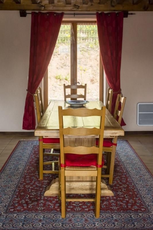 A l'étage: 1 chambre (1 lit 140x190), 2 chambres (2 lits 90x190 chacune), salle d'eau, wc, bureau sur palier. Garage. Portique avec balançoire. Chauffage électrique en sus + poêle à bois gratuit (bois à disposition à volonté) .