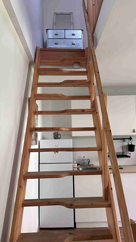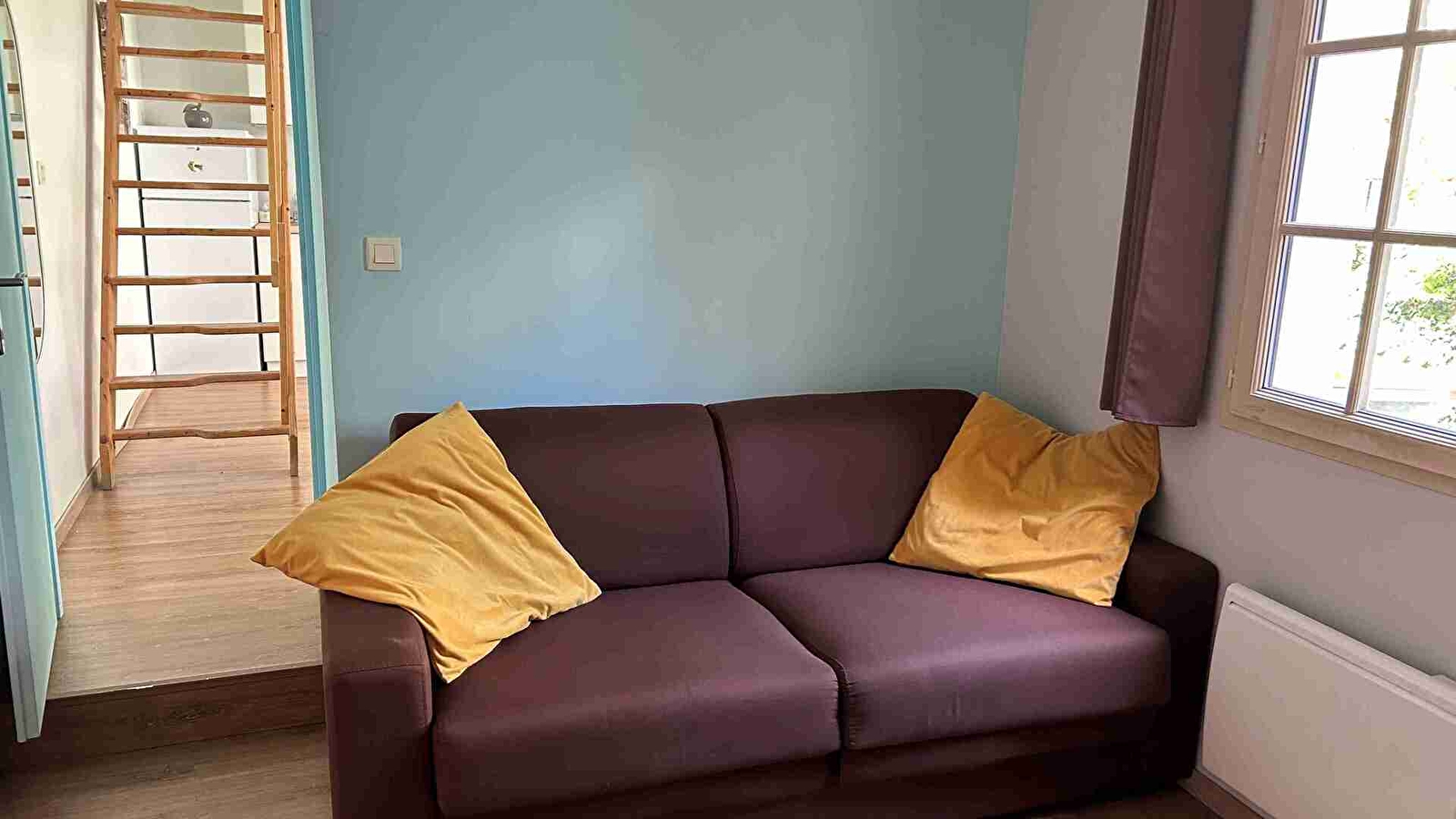 Entièrement rénové, l'appartement dispose d'une cuisine équipée avec coin repas, d'un salon avec canapé-lit (140x190cm), d'une chambre en mezzanine avec un lit double (140 x 190cm) et d'une salle de bain avec baignoire. Le linge de lit et de toilette est fourni.