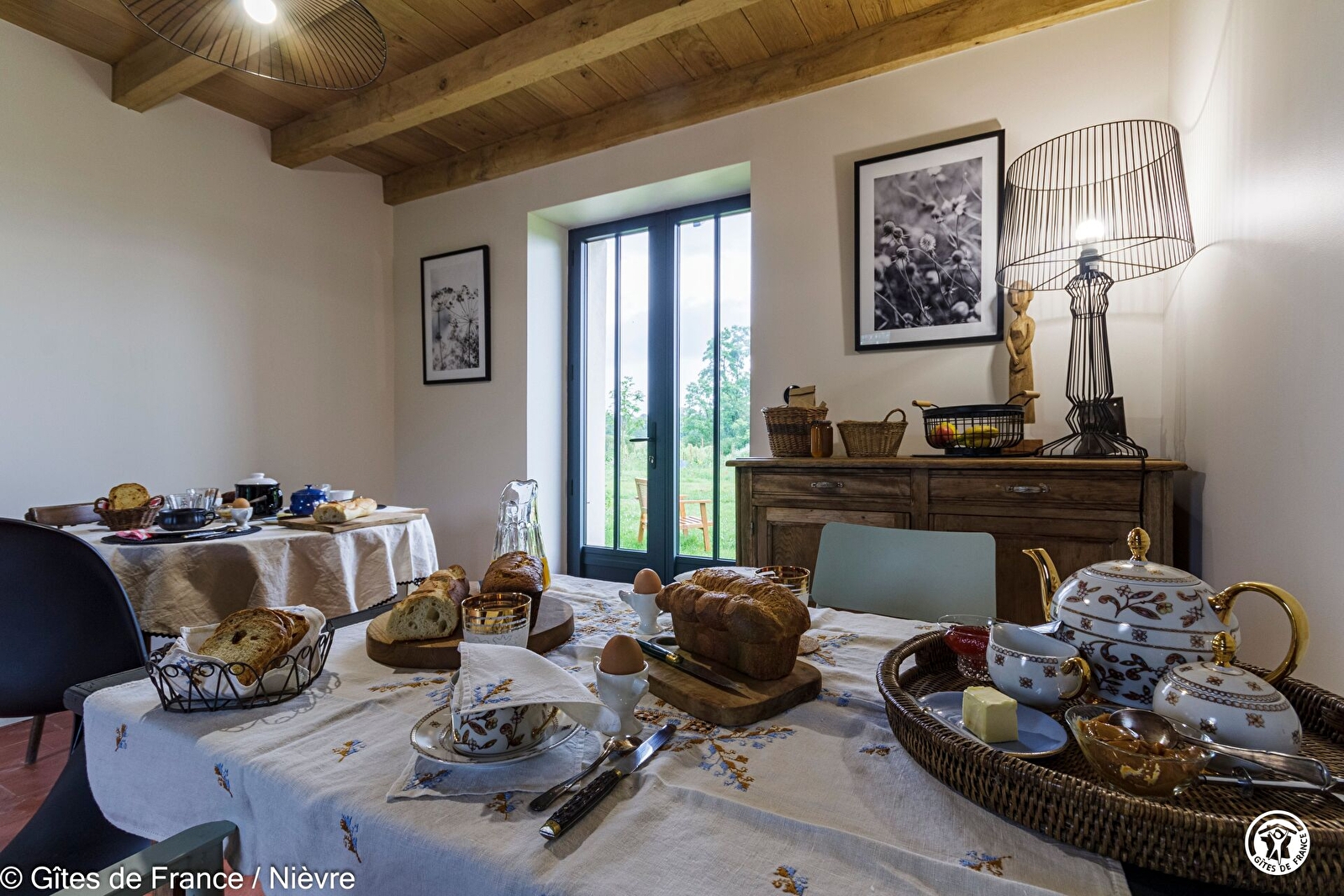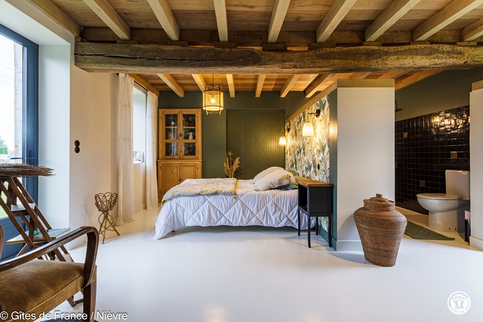 Entre Loire et Morvan, idéalement située le long de la vélo route de la Loire en Bourgogne. Nadine vous accueille dans sa maison entièrement rénovée pour votre plus grand confort, et vous propose 2 chambres d'hôtes : au rez de chaussée, la chambre PMR "Exotique" vous accueille avec un grand lit 160x200, et une salle d'eau comprenant une grande douche, lavabo et wc, le tout dans une ambiance zen et avec accès direct dans le jardin. Attenant à la chambre, la salle du petit déjeuner lequel sera composé de produits faits maison (confitures et gâteaux, jus de fruits frais) et produits locaux. En enfilade, la cuisine sera mise à votre disposition ainsi qu'un confortable salon, sans oublier le jardin. Au 1er étage, la chambre "Marrakech" vous séduira par ses tons doux et sa salle de bain ouverte sur la chambre avec également un lit 160x200, le wc est privatif et se trouve juste à côté de la chambre. Dans chaque chambre, possibilité 1 lit 90x190 supplémentaire au tarif de 15€/nuit.