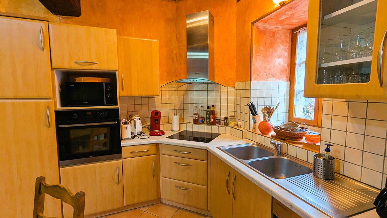 La maison d’une superficie de 210 m2 est composée d'une cuisine équipée ouverte sur la salle à manger et de son coin salon avec cheminée et télévision. Buanderie avec machine à laver, sèche-linge, congélateur ainsi qu'un réfrigérateur supplémentaire.