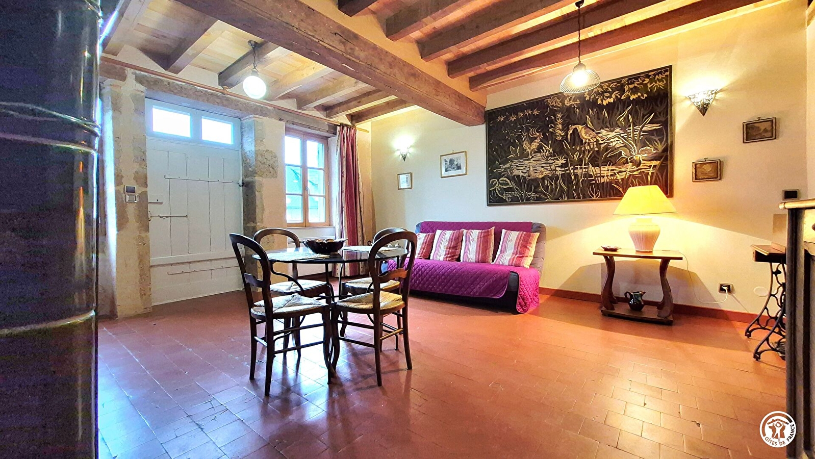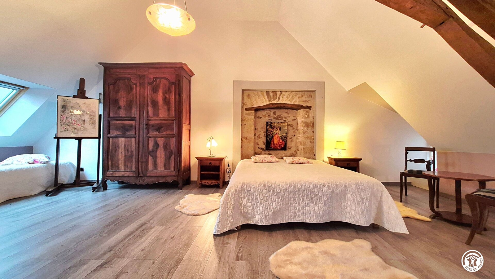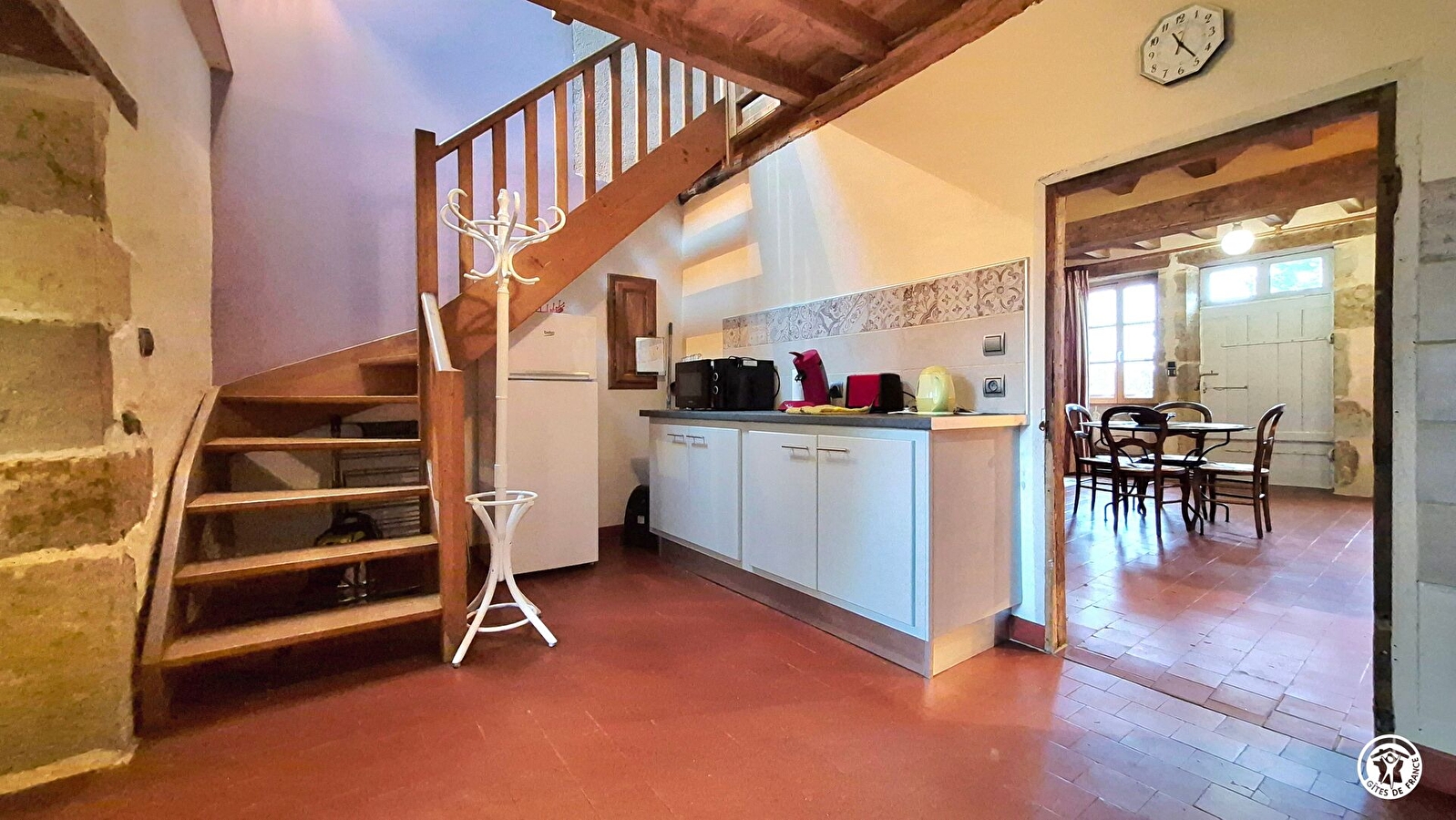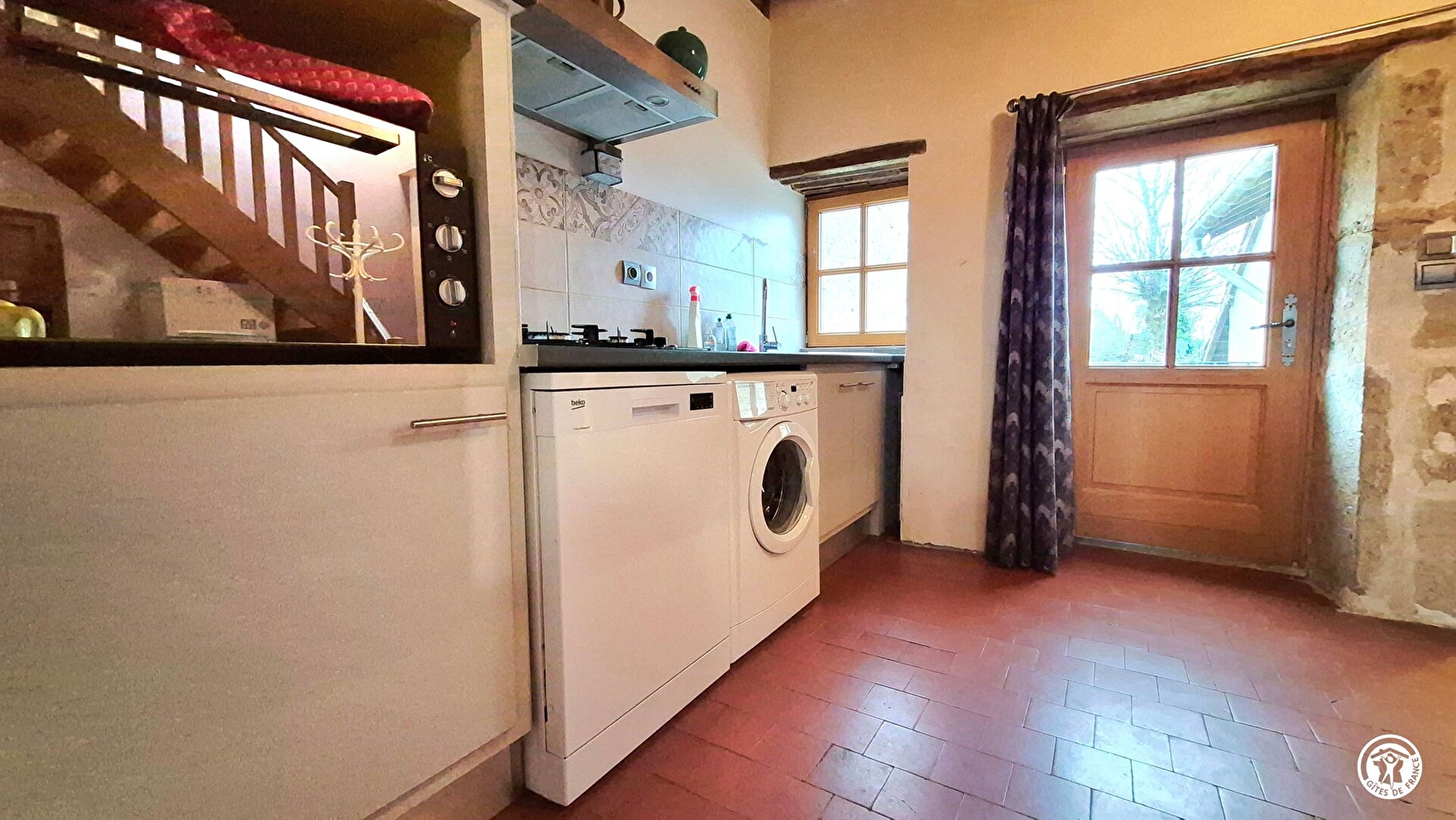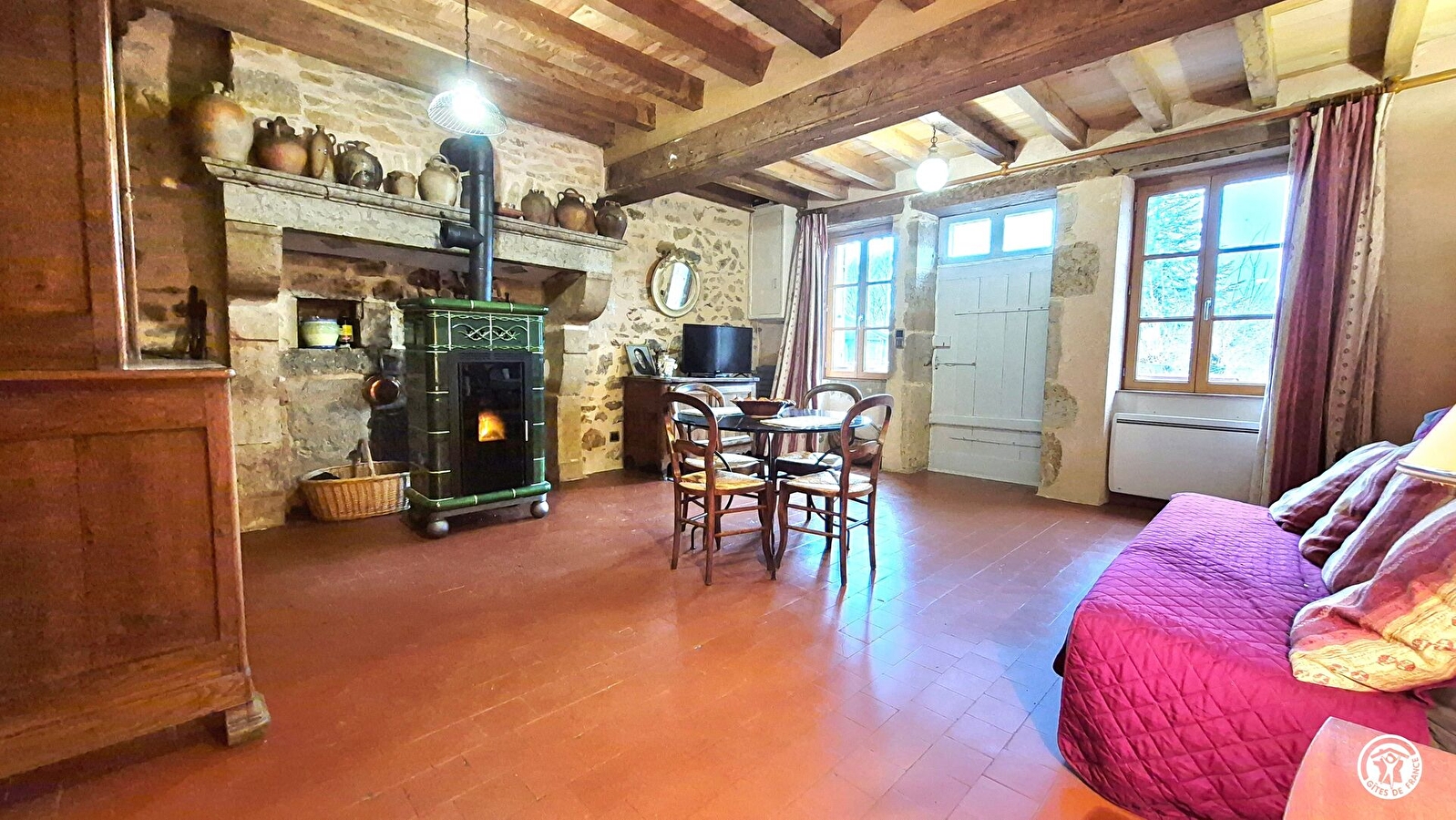 Au calme d'un hameau, maison individuelle pour 2 à 3 personnes. Entrée dans la maison par un escalier en pierre extérieur, balcon pour prendre vos repas avec plancha électrique à disposition. A l'intérieur pièce à vivre avec canapé clic-clac (couchage d'appoint pour la 3ème personne à 15€/nuit), télé, poêle à granulés; cuisine séparée équipée; une salle d'eau comprenant une douche, wc, sèche serviette chauffant). A l'étage très grande chambre avec 1 lit 160x200, et un bureau.