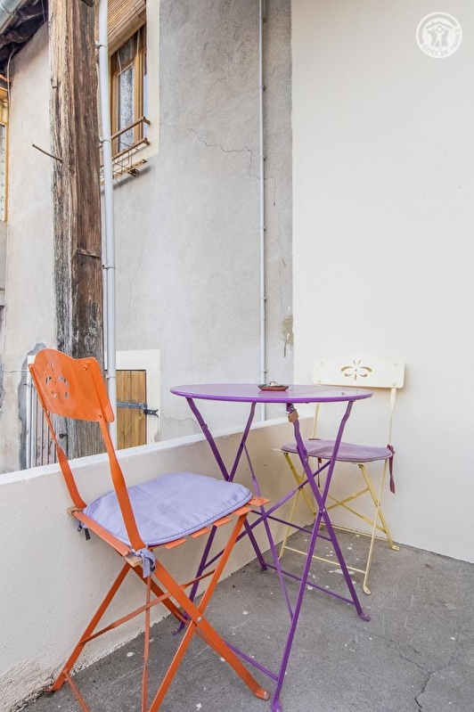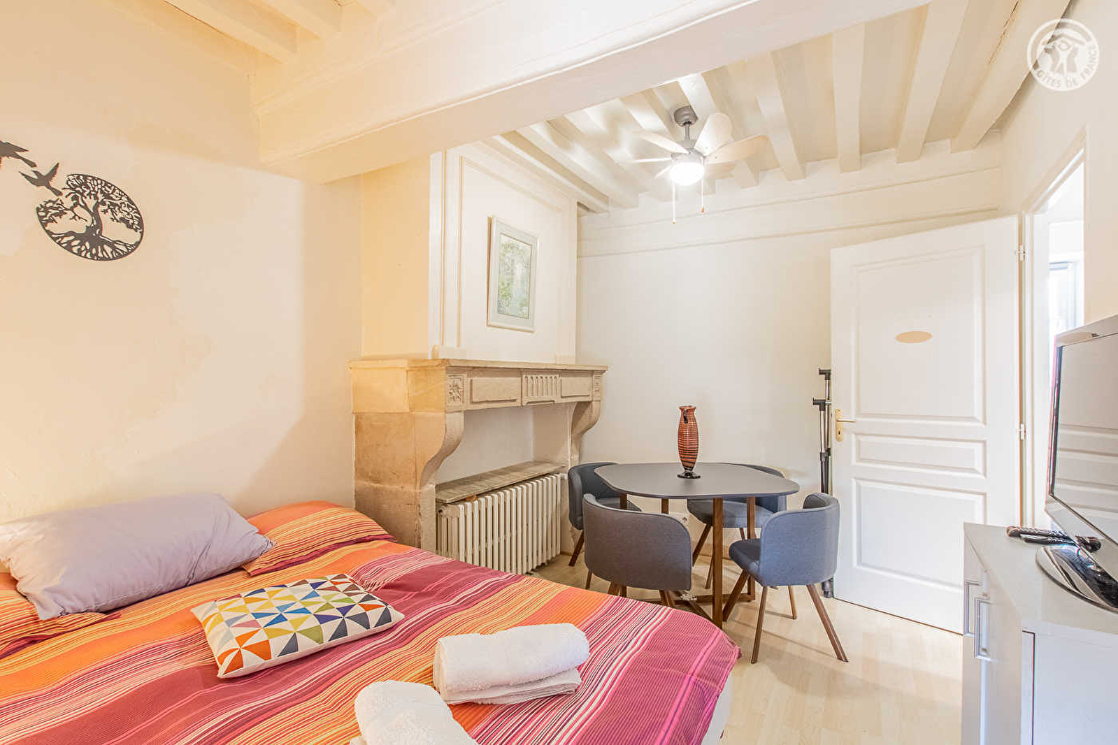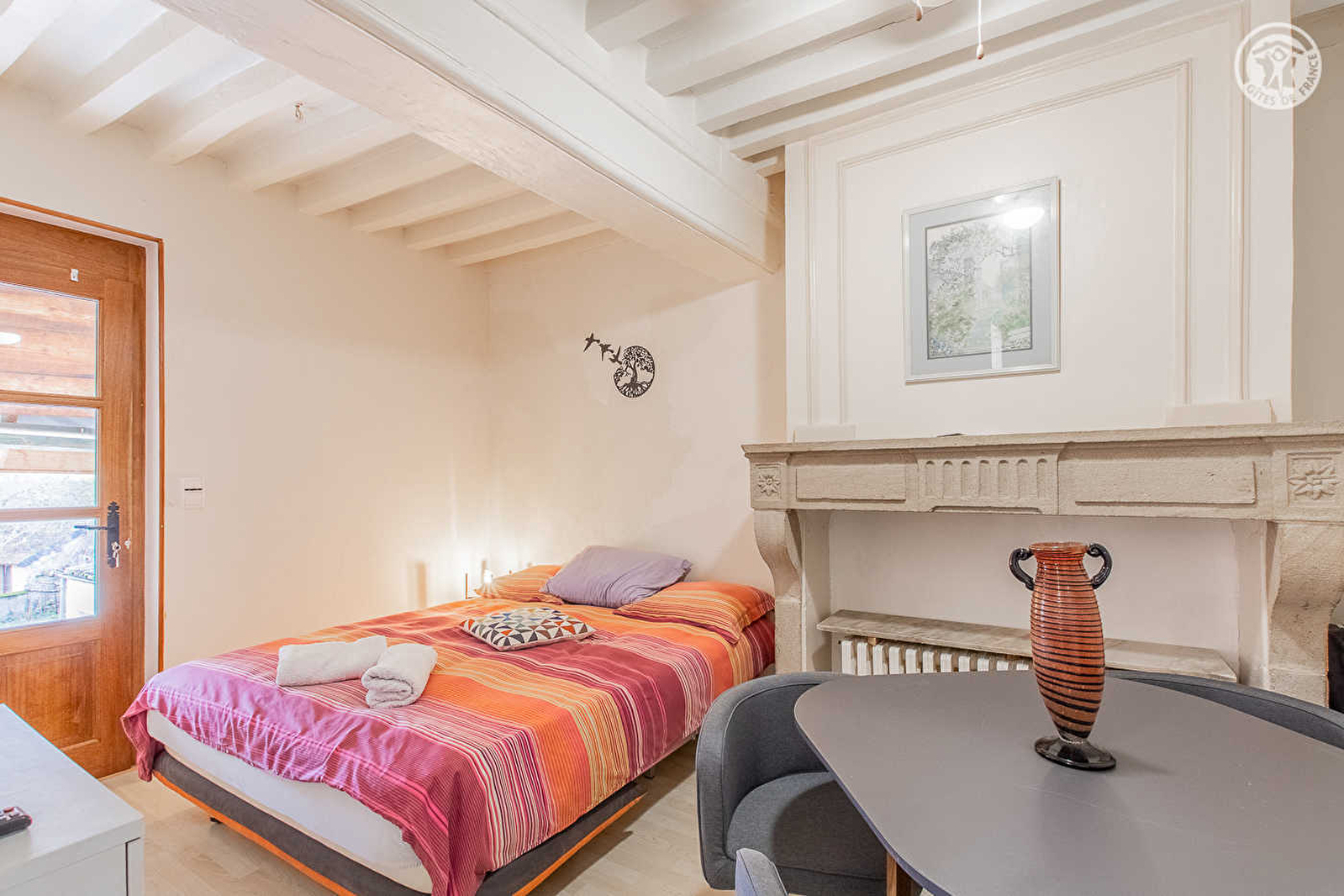 Composition : Maison comprenant le cabinet professionnel du propriétaire & 3 gîtes. Buanderie en commun au rdc (lave-linge). Wifi (fibre). Chauffage PAC. Gîte au 1er étage jouxtant un autre gîte (séparation par une porte). Espace cuisine (dans couloir), séjour-salon (canapé convertible 2 p. 140x190cm), chambre avec TV (lit 2 p. 140x200cm), sdb (baignoire + douche multijets + Wc). Mini balcon abrité privatif. Cour-terrasse en commun. Local vélos. Parking public payant sur place. Supermarché 500m. Gare 1.5 km.
