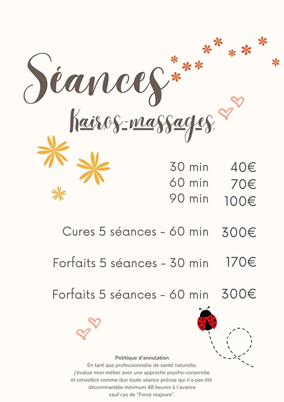 - Tarif de base : Tarif unique de 40€ (30 minutes)