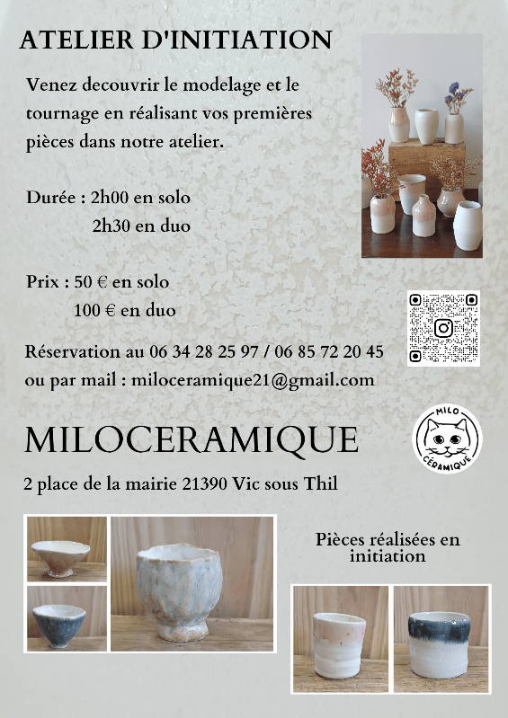 Milocéramique est un atelier de céramique installé à Vic sous Thil créé en juillet 2023 par Delphine et Vincent.