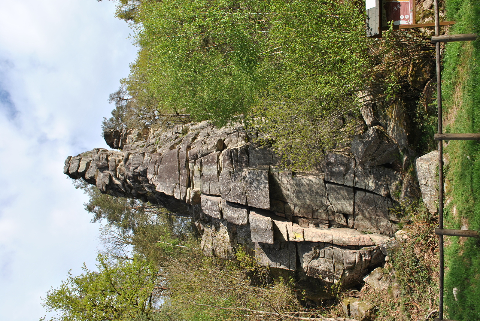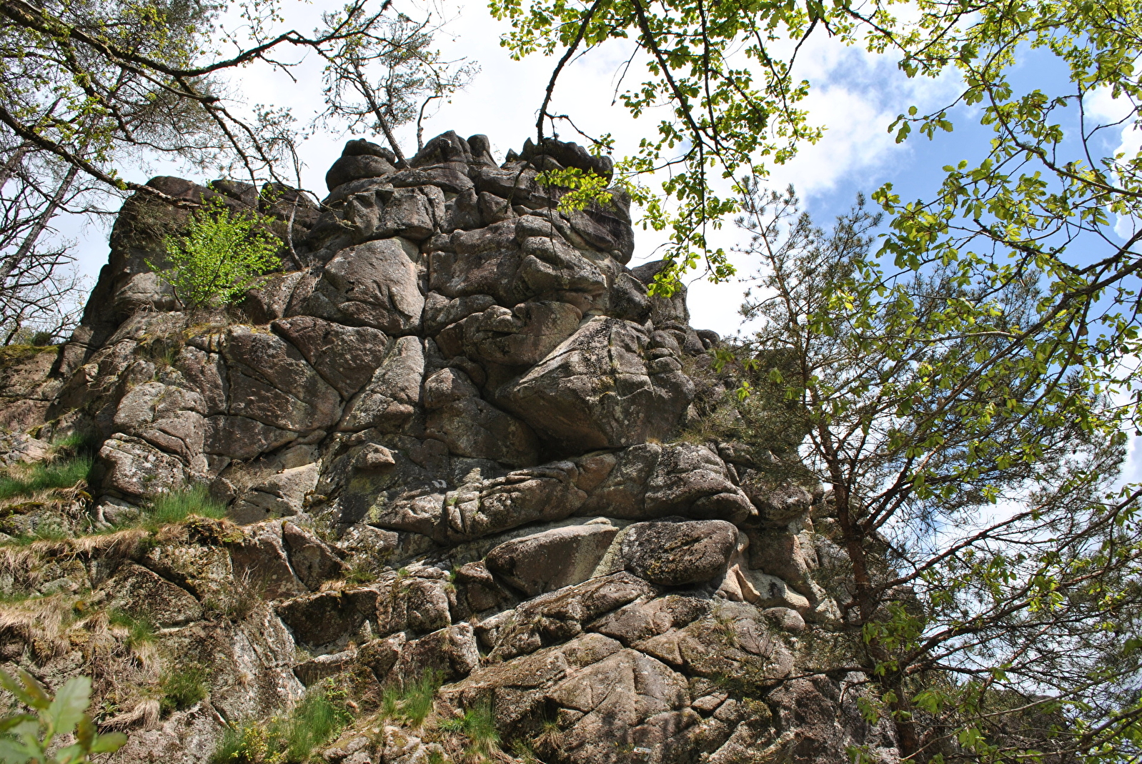 C’est en fait un groupe de rochers, formé de deux aiguilles (nord et sud). Un bloc sommital accolé à l’aiguille nord et un bloc inférieur en dessous de l’aiguille sud. Ces aiguilles sont construites comme un empilement de blocs compacts où l’escalade est, au début, déconcertante. Avec un peu d’habitude, on y prend beaucoup de plaisir et on en redemande.
