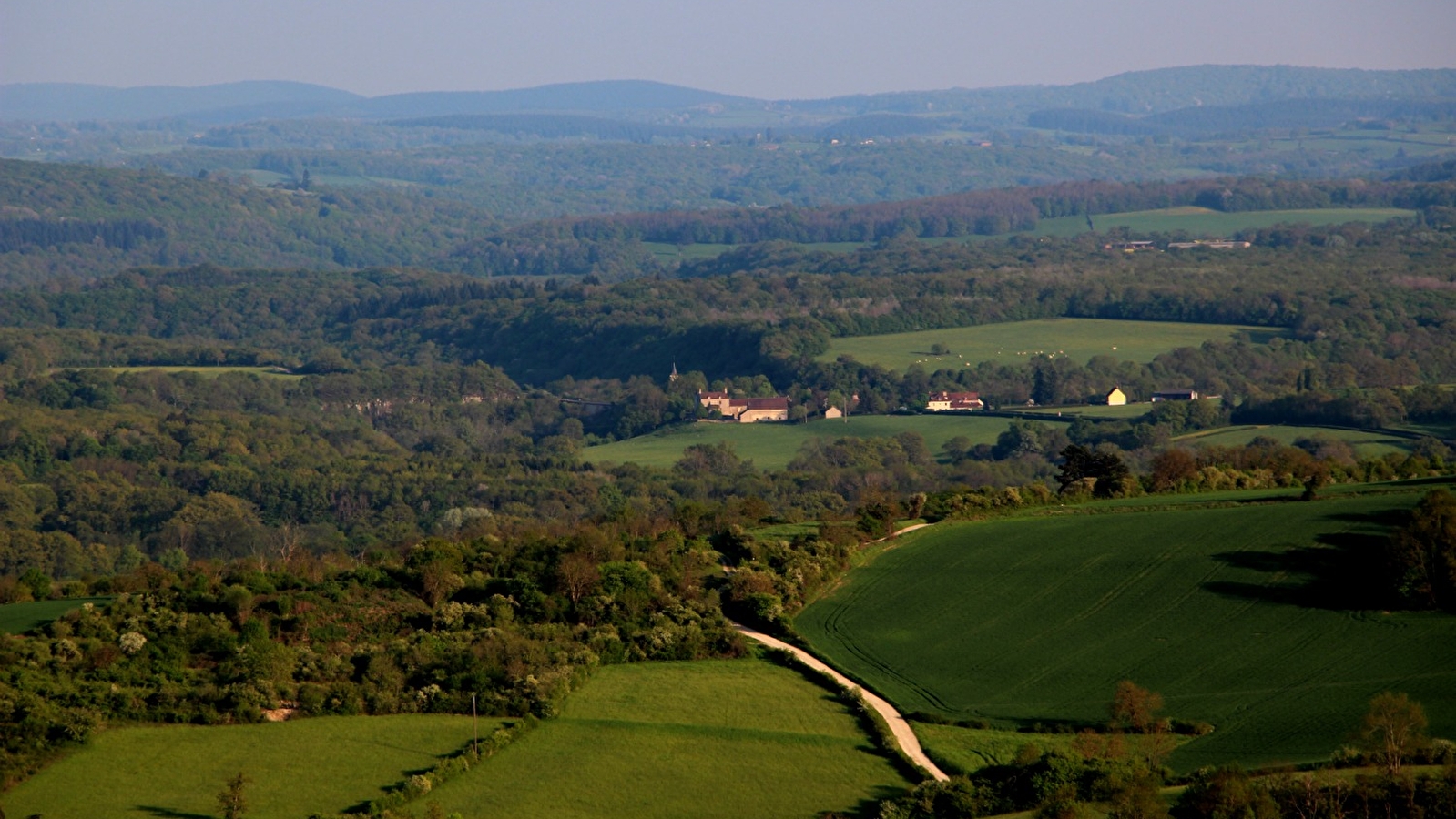 Prolongez la visite par les extérieurs, au chevet de la basilique le paysage s'ouvre sur Saint-Père, Pierre-Perthuis, les vignes, au loin les  Fontaines salées et les monts du Morvan.